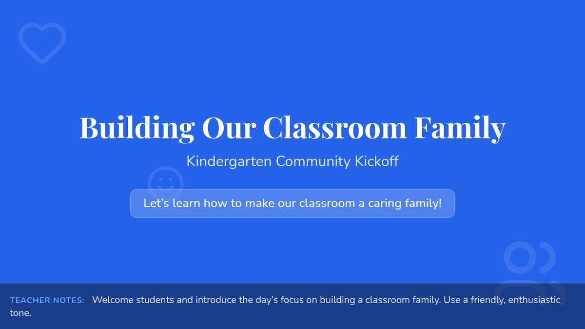 A comprehensive sequence for Kindergarten teachers to establish a warm, inclusive classroom environment through social-emotional learning activities and storytelling.