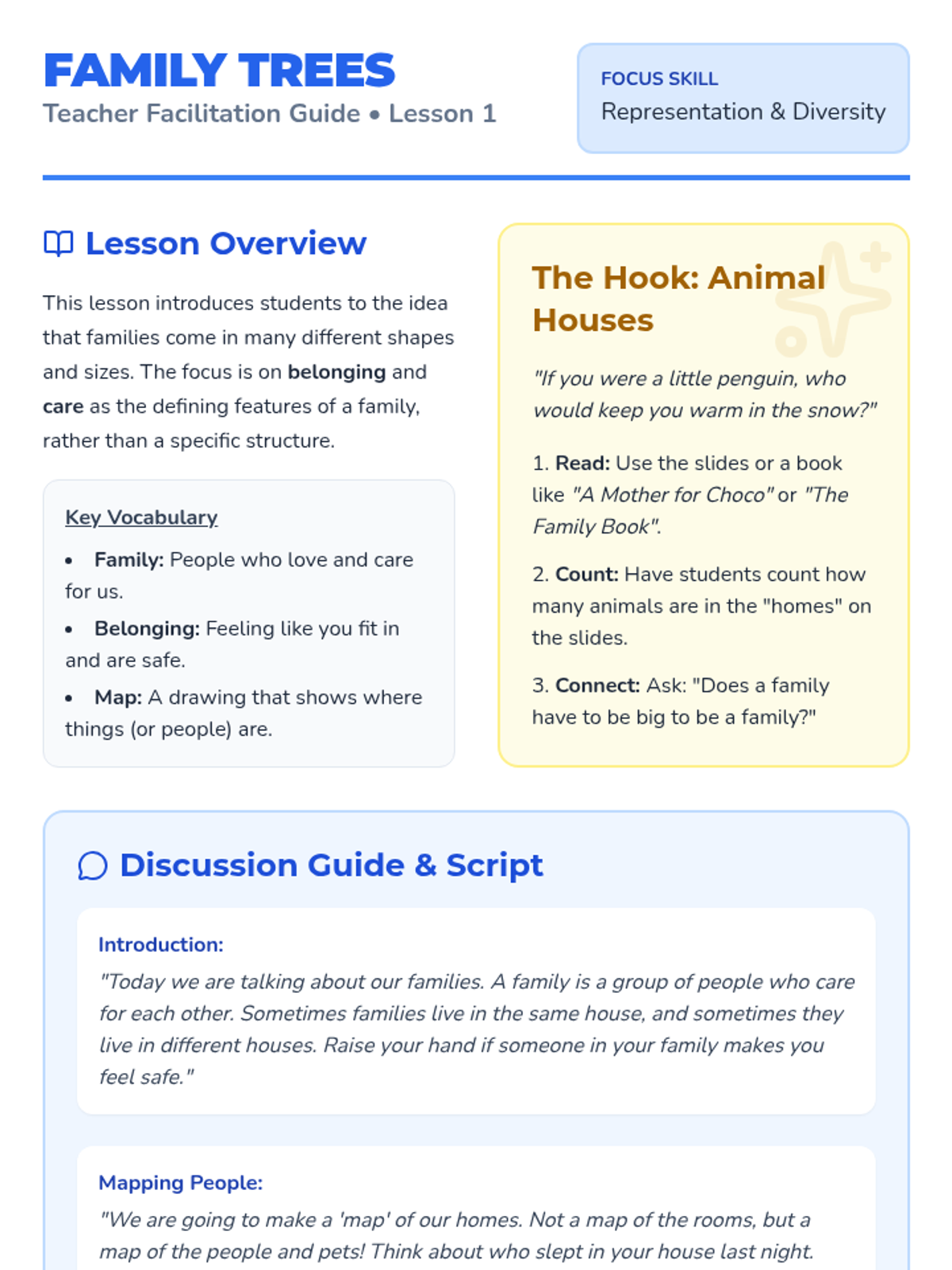 A Pre-K sequence focused on family identity, helping children recognize their roles, celebrate their home culture, and see their classroom as a supportive community.