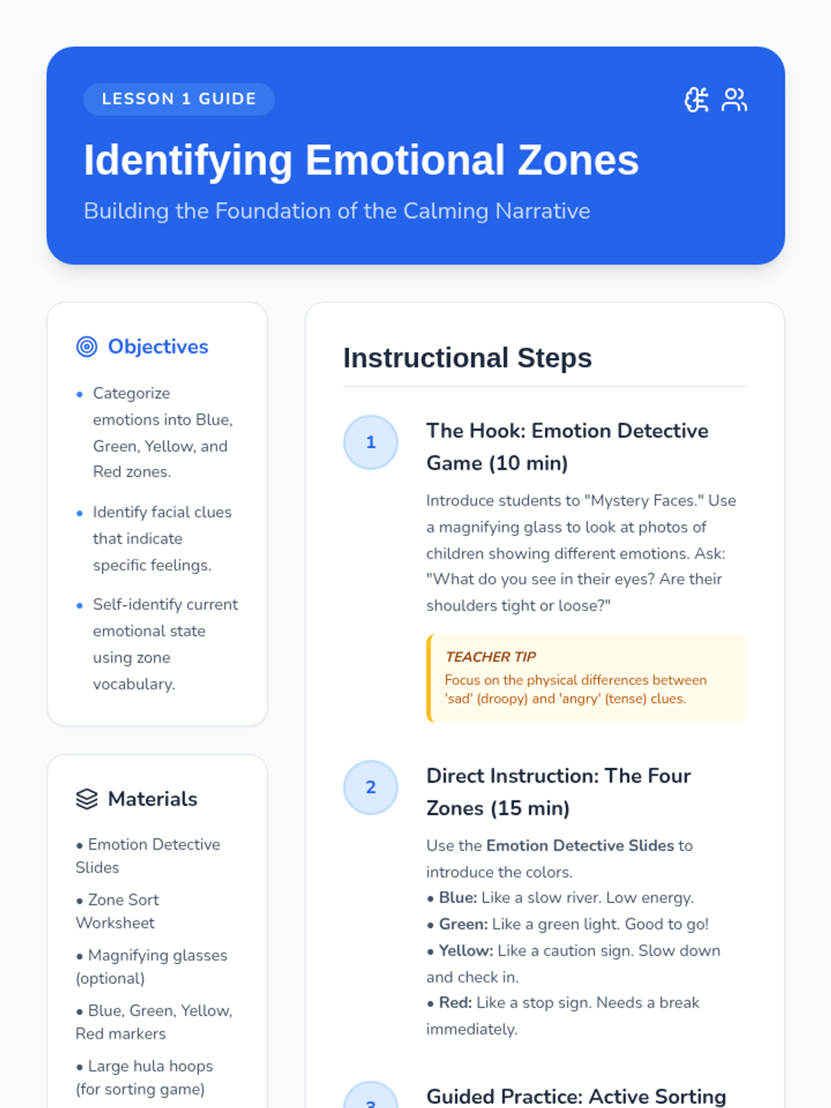 A comprehensive 10-session social-emotional learning series for K-2 students, focusing on emotional literacy, regulation, empathy, and social problem-solving.