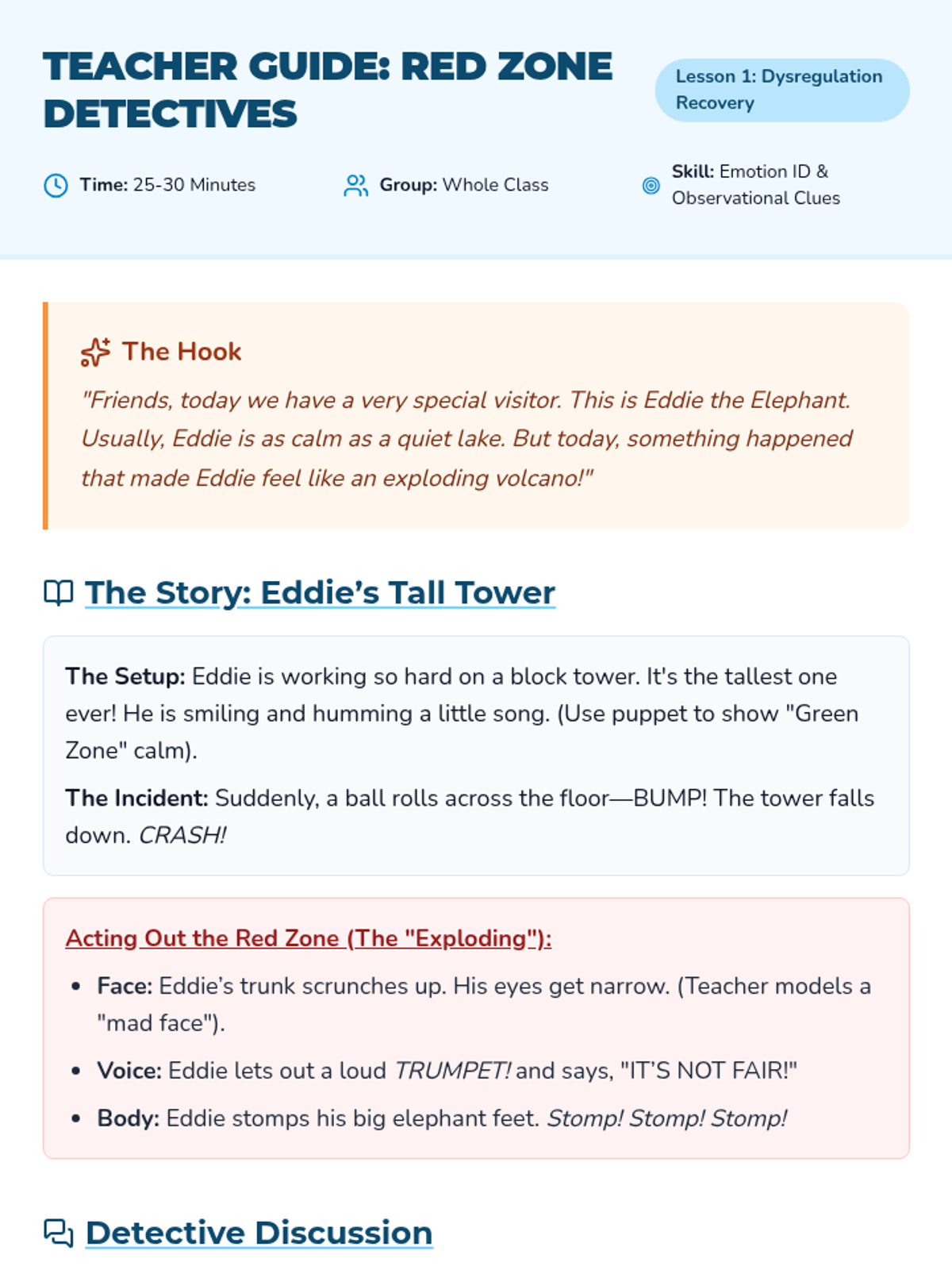 A 5-lesson sequence for Pre-K students focused on co-regulation, accepting adult help during dysregulation, and successfully transitioning back to social play using restorative 'repair' rituals.