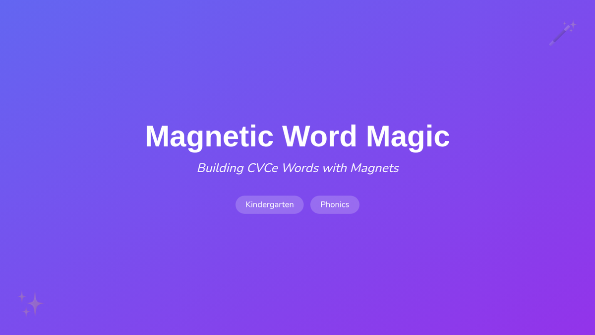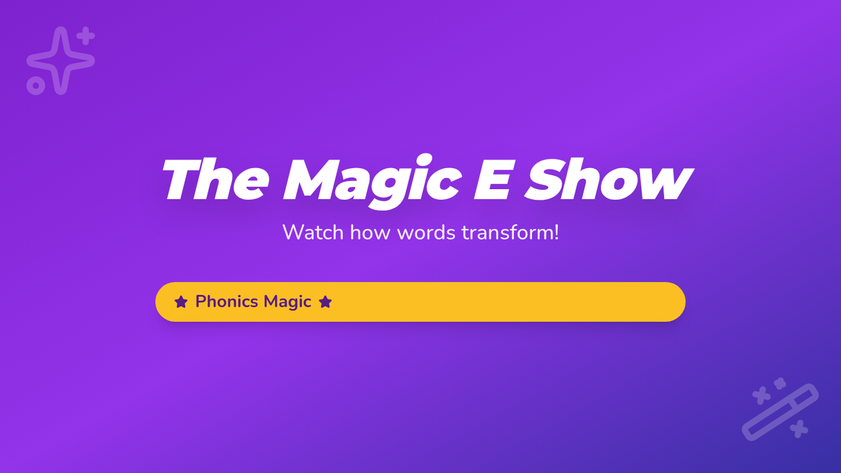 A Kindergarten phonics sequence introducing the Silent E (CVCe) syllable pattern through a 'Magic E' narrative. Students explore how the addition of a silent 'e' transforms vowel sounds from short to long through storytelling, hands-on manipulation, and writing.