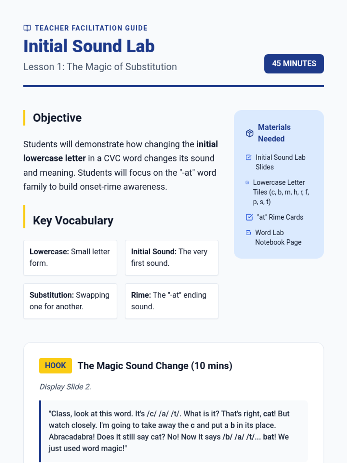 This sequence focuses on blending CVC words by treating vowels as the 'glue' that holds consonants together. Through hands-on workshop-style activities, students learn phonemic blending and segmentation in an engaging, construction-themed environment.
