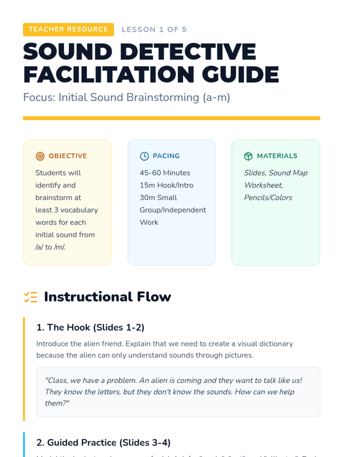 A comprehensive Pre-K sequence focused on phonemic awareness and articulation of the short /a/ sound. Students explore mouth mechanics, isolate initial and medial sounds, and practice oral blending through multi-sensory activities.