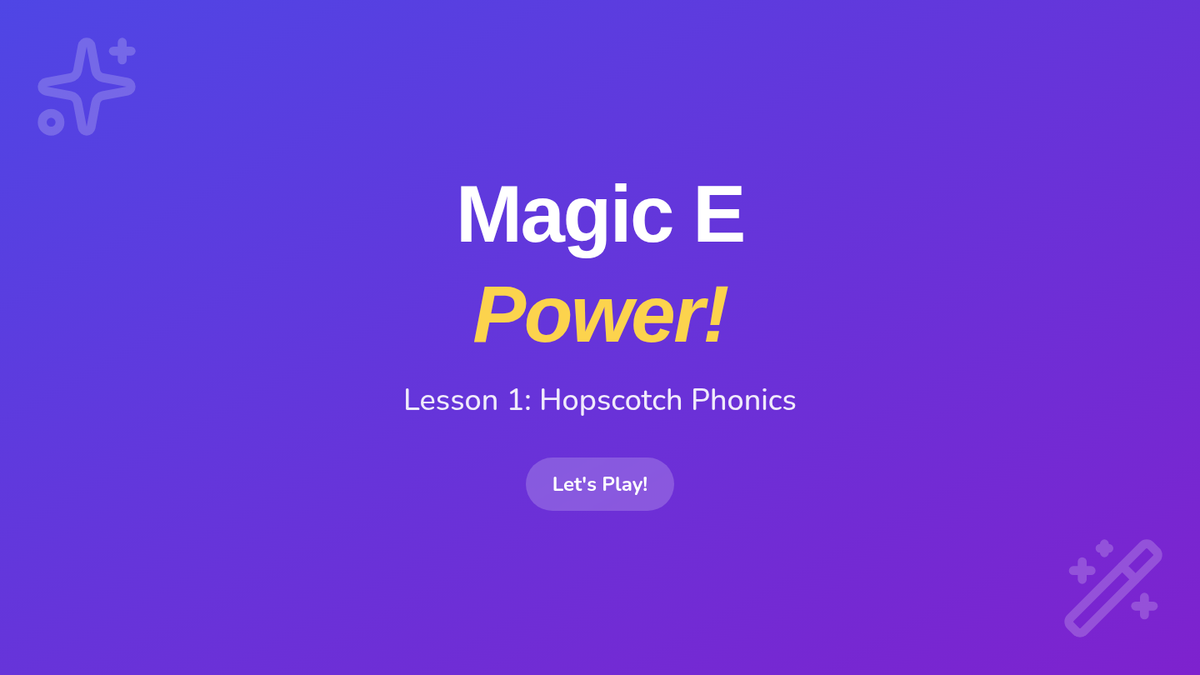 A Kindergarten sequence introducing the Silent E rule (CVCe pattern). Students learn to distinguish short and long vowel sounds, apply the 'Magic E' mechanic to transform words, and decode a_e, i_e, o_e, and u_e patterns through interactive games and hands-on practice.