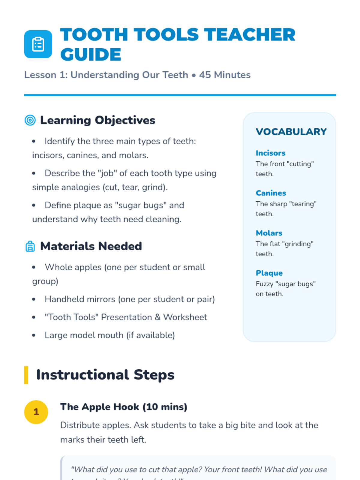 A comprehensive hygiene sequence for Kindergarteners focusing on oral health and grooming routines through hands-on activities, role-play, and the 'Sparkle Squad' theme.