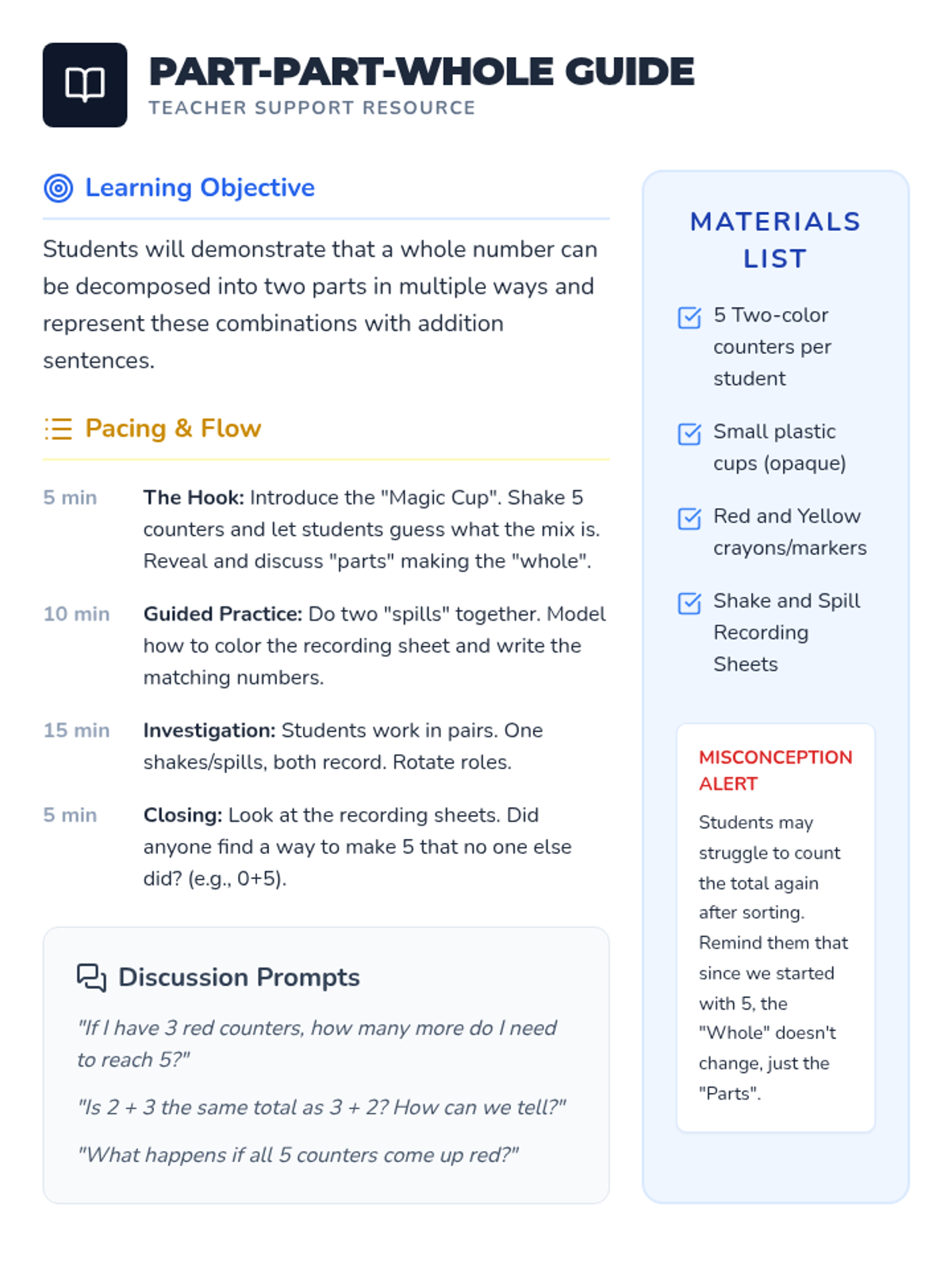 A high-intensity, evidence-based intervention designed for students needing foundational number sense support. Focuses on subitizing, 1:1 correspondence, place value, and decomposition using a CRA (Concrete-Representational-Abstract) approach.