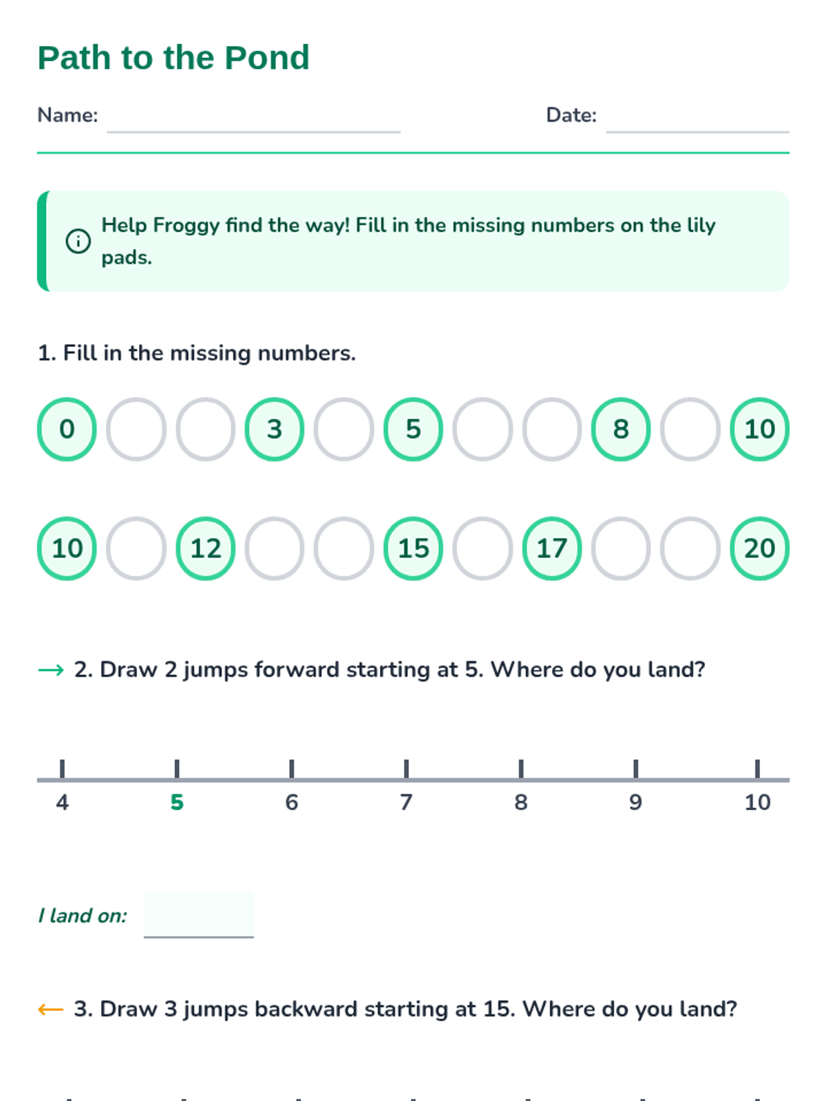 Counting SequenceSequential number naming and cardinal counting principles for early learners. Develops fluency in forward and backward sequences while introducing skip-counting patterns.