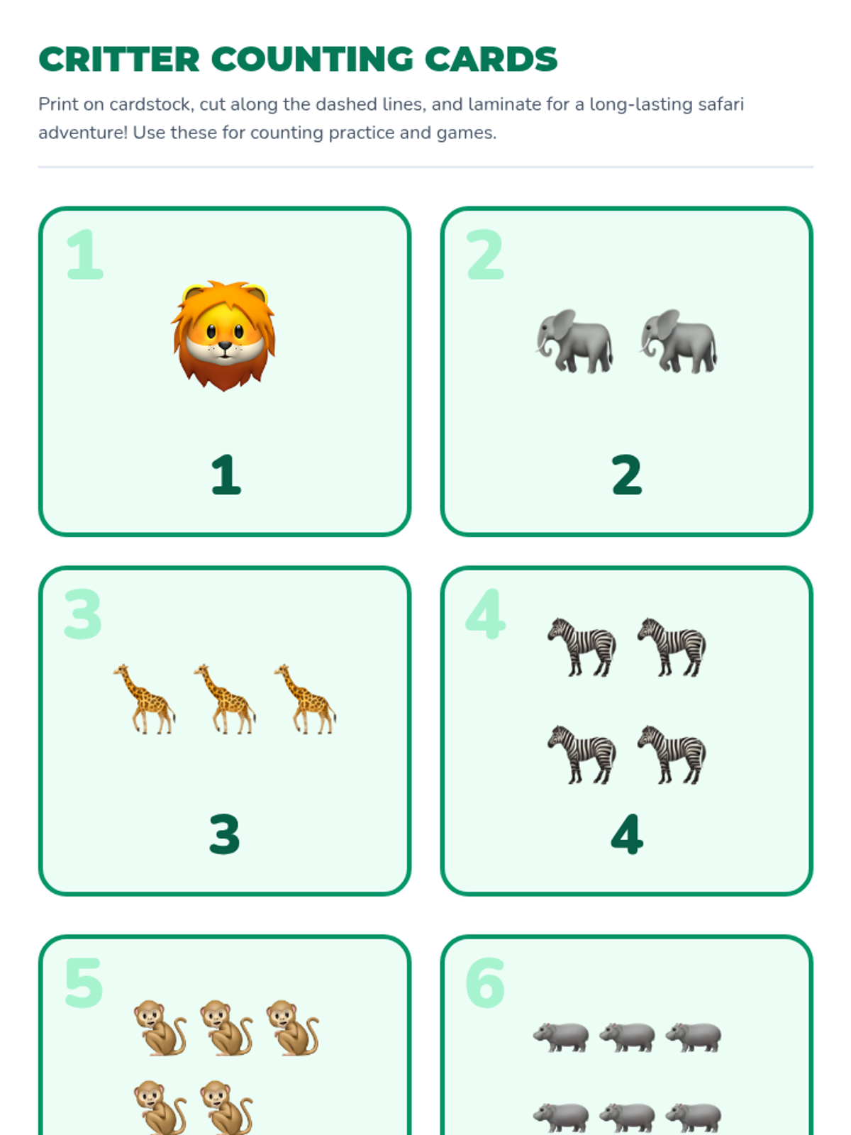 A comprehensive sequence for kindergarteners to master counting and writing numbers 1-20 through a fun jungle-themed exploration.