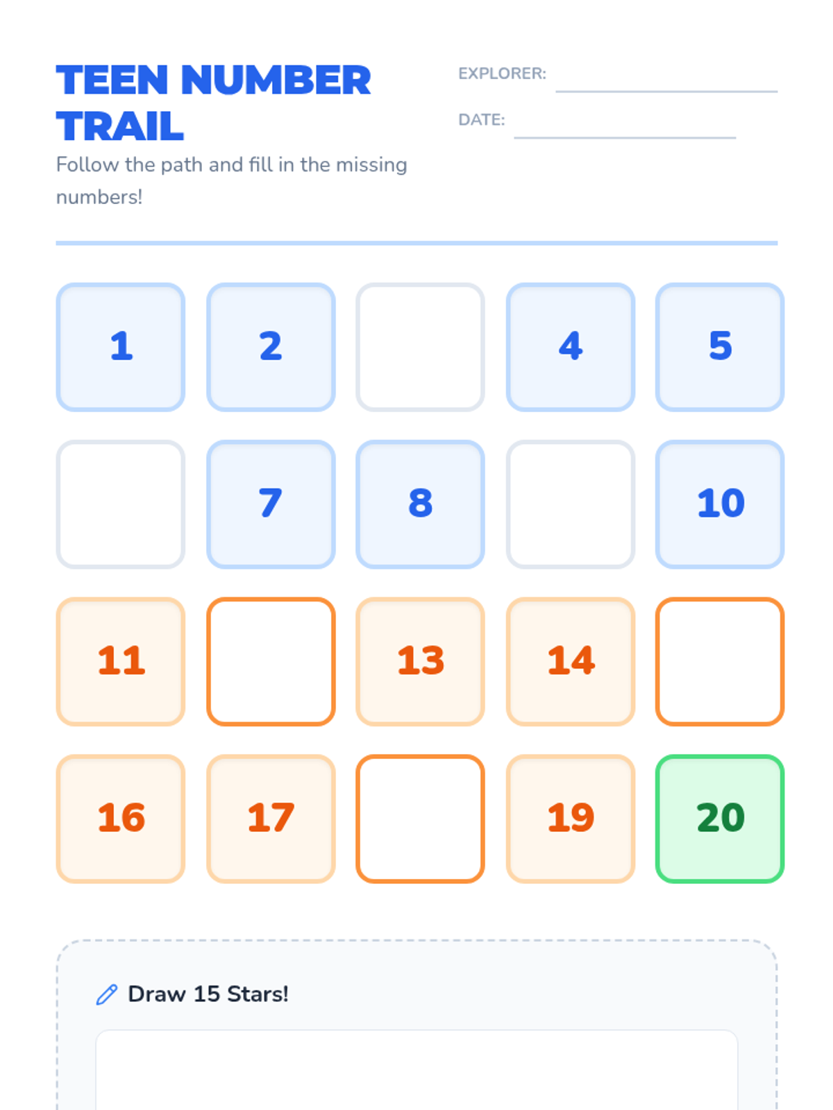 A Kindergarten math sequence focused on mastering numeral formation and recognition for numbers 0-20. Students use multisensory techniques, mnemonics, and real-world application to bridge the gap between spoken numbers and their written symbols.
