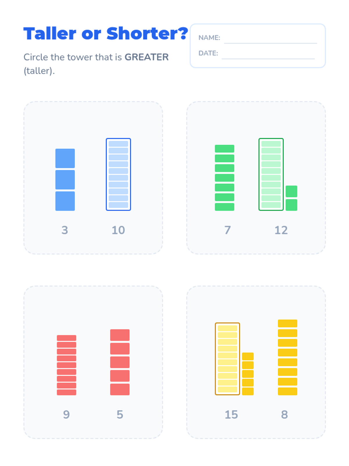 A Kindergarten sequence focusing on comparing and ordering numbers 0-20 by understanding the power of 'ten' and the role of 'ones' in determining magnitude.