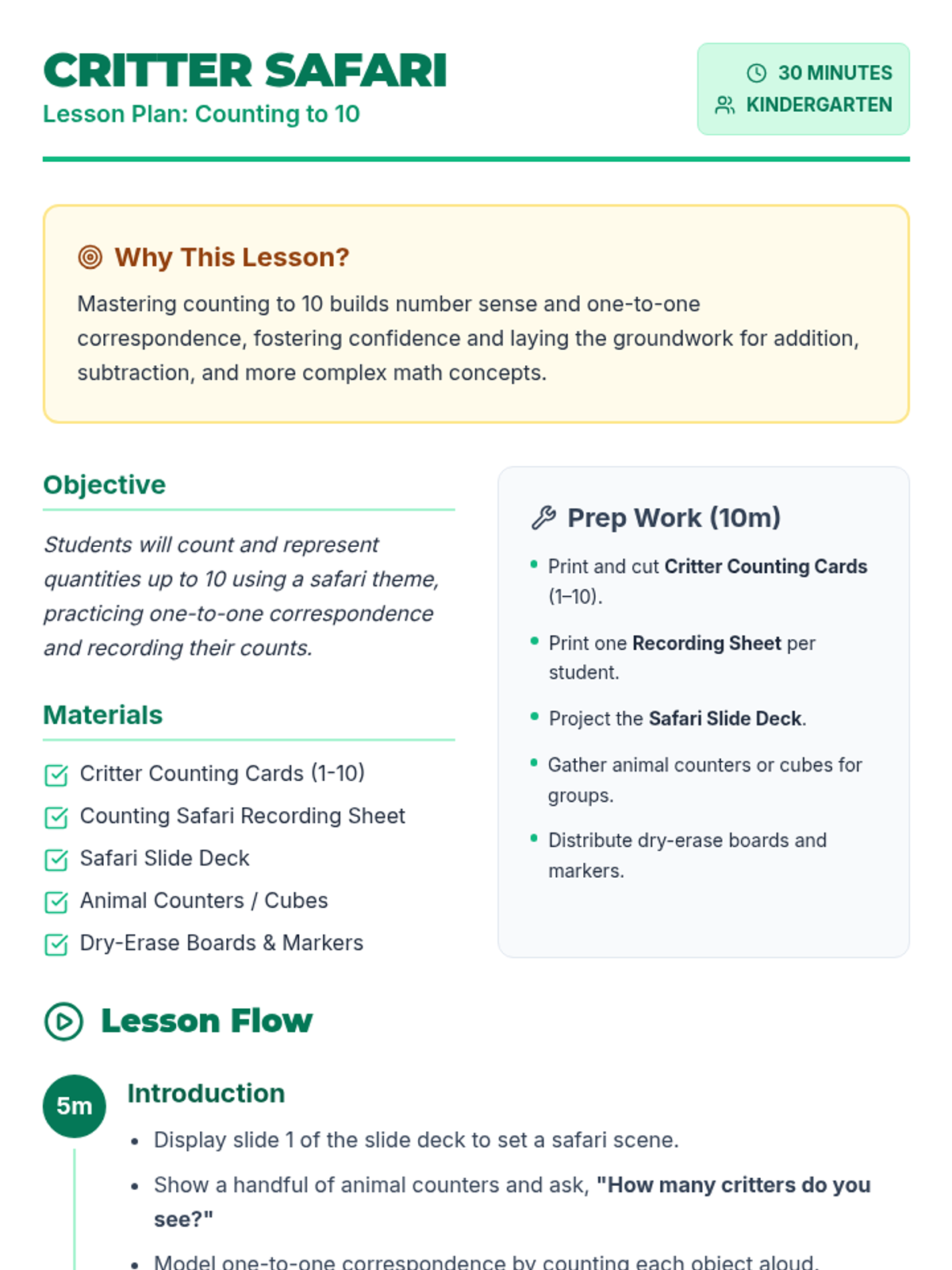A comprehensive 12-lesson Tier 2 intervention sequence for Kindergarten Counting and Cardinality. These lessons utilize All Learners Network (ALN) High Leverage Concepts and IM curriculum strategies to support students in mastering number names, counting sequences, cardinality, and comparison through multi-sensory and UDL approaches.