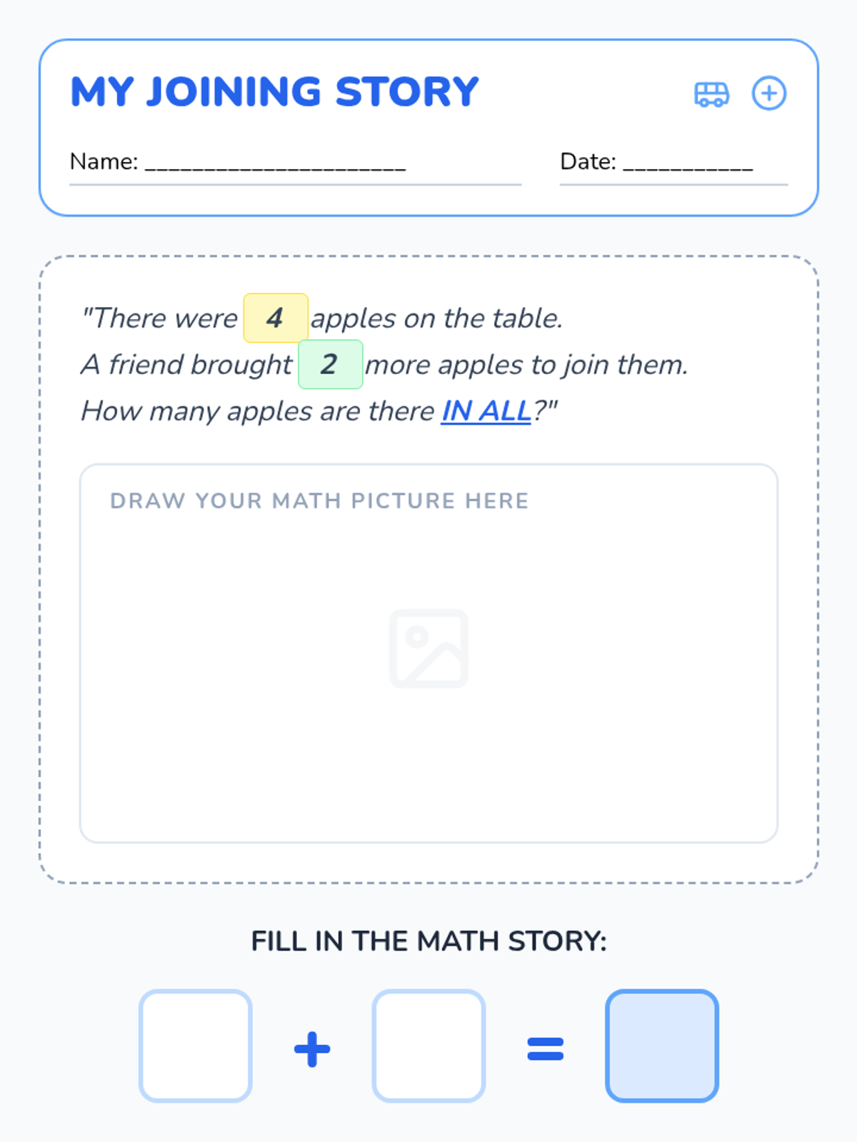 Addition and Subtraction ProblemsOne- and two-step word problems involving joining, separating, and comparing quantities. Develops strategies for modeling operations and understanding the inverse relationship between addition and subtraction.