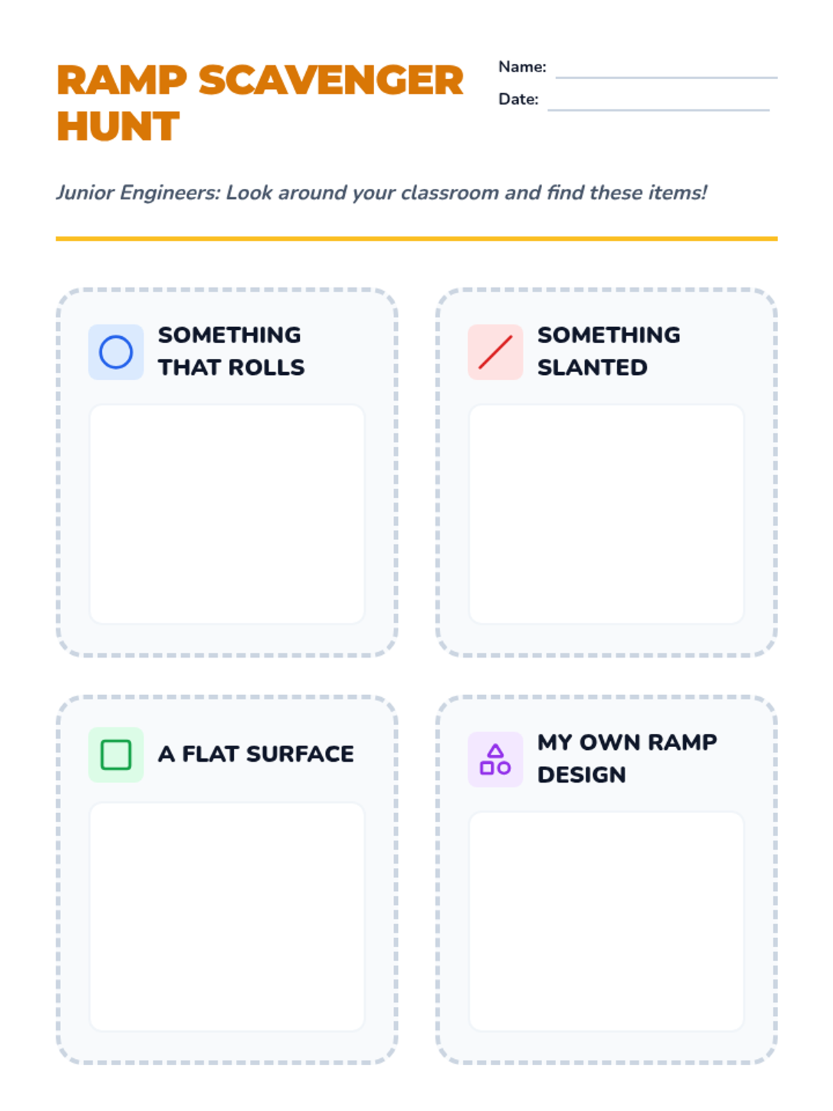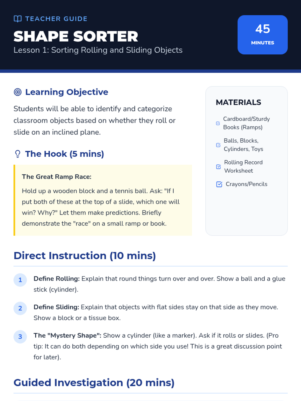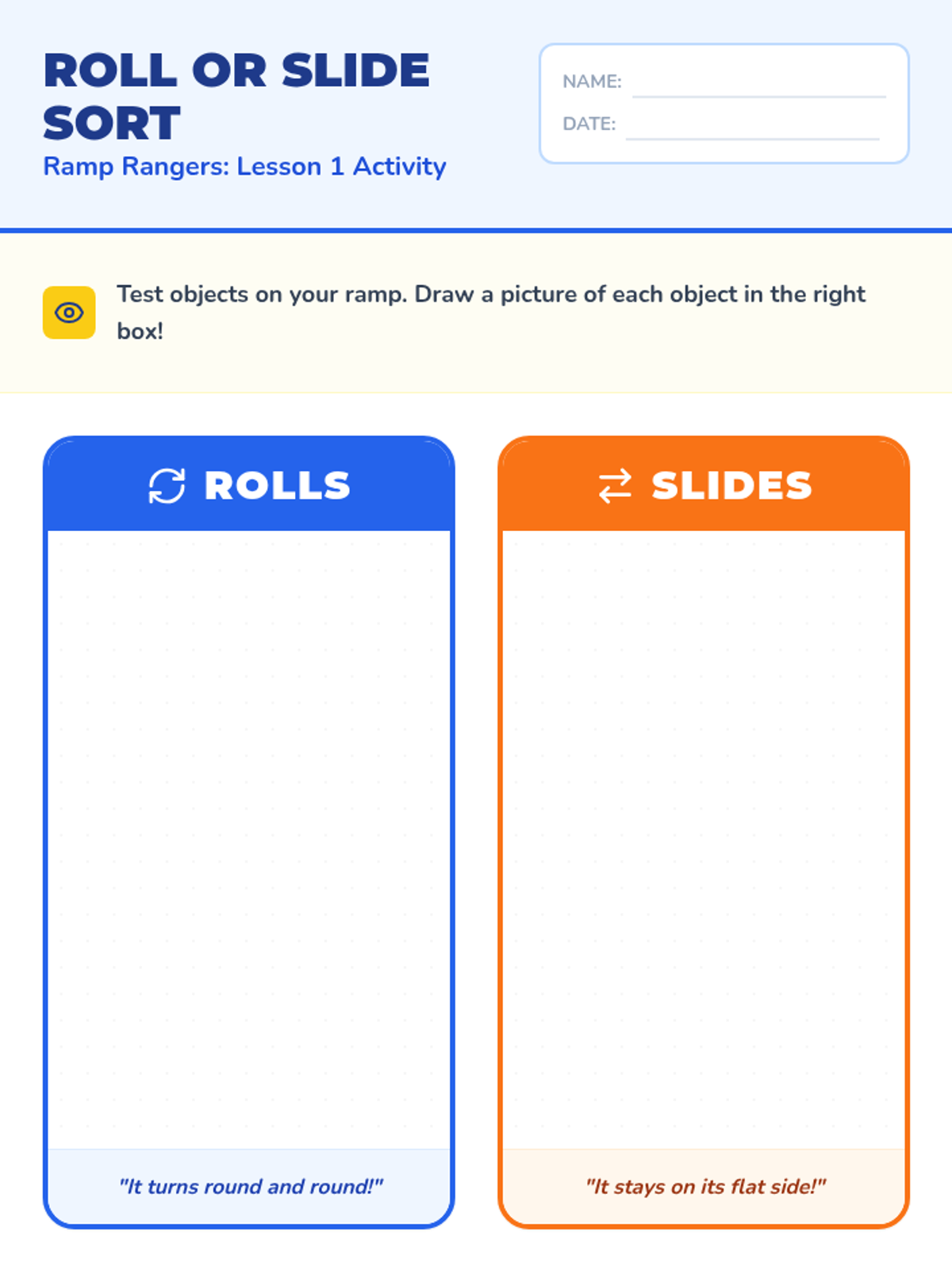 A Kindergarten science sequence where students explore physics through engineering ramps. They investigate how shape, slope, and texture affect the motion of objects, culminating in a marble run design challenge.