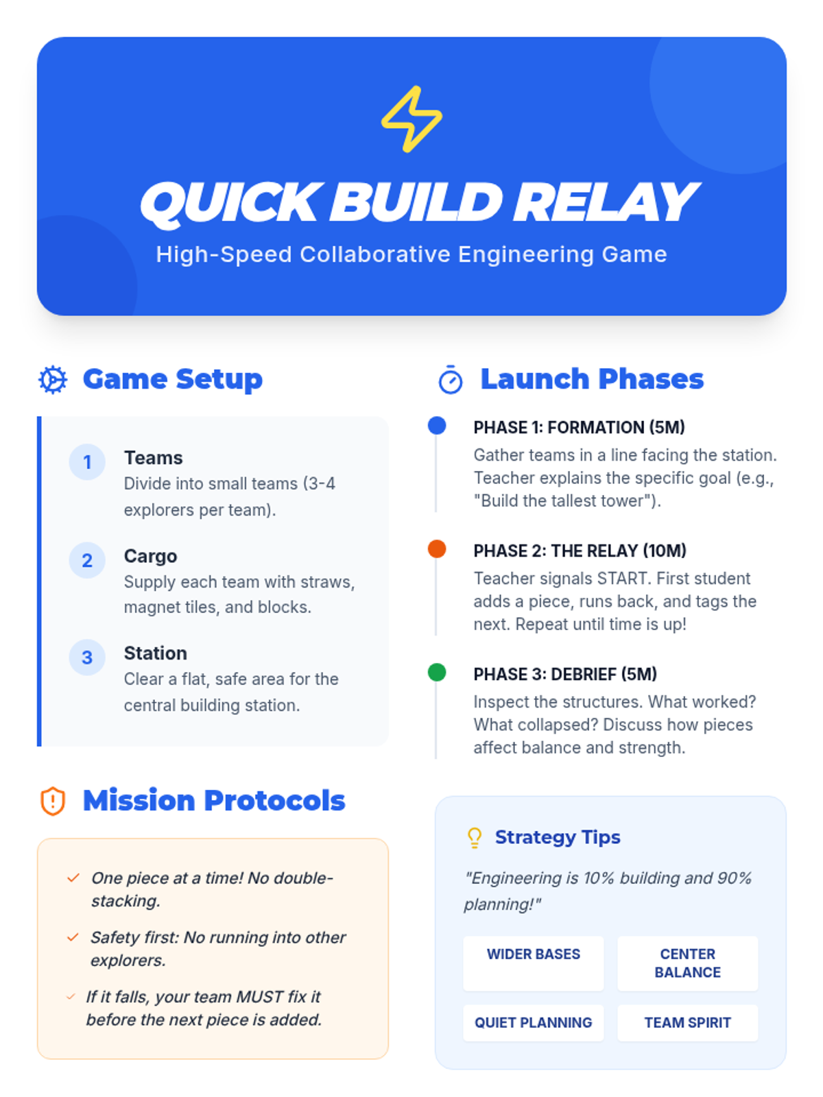 A Kindergarten sequence that uses engineering design challenges to teach resilience and perseverance. Students learn that failure is part of the learning process through building towers, bridges, and collaborative puzzles.