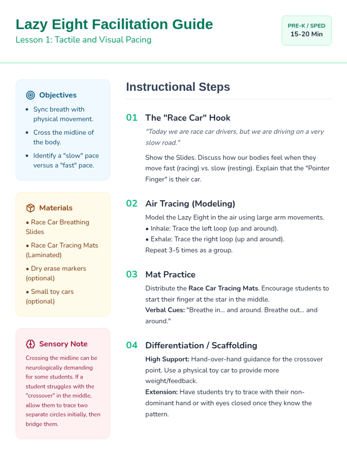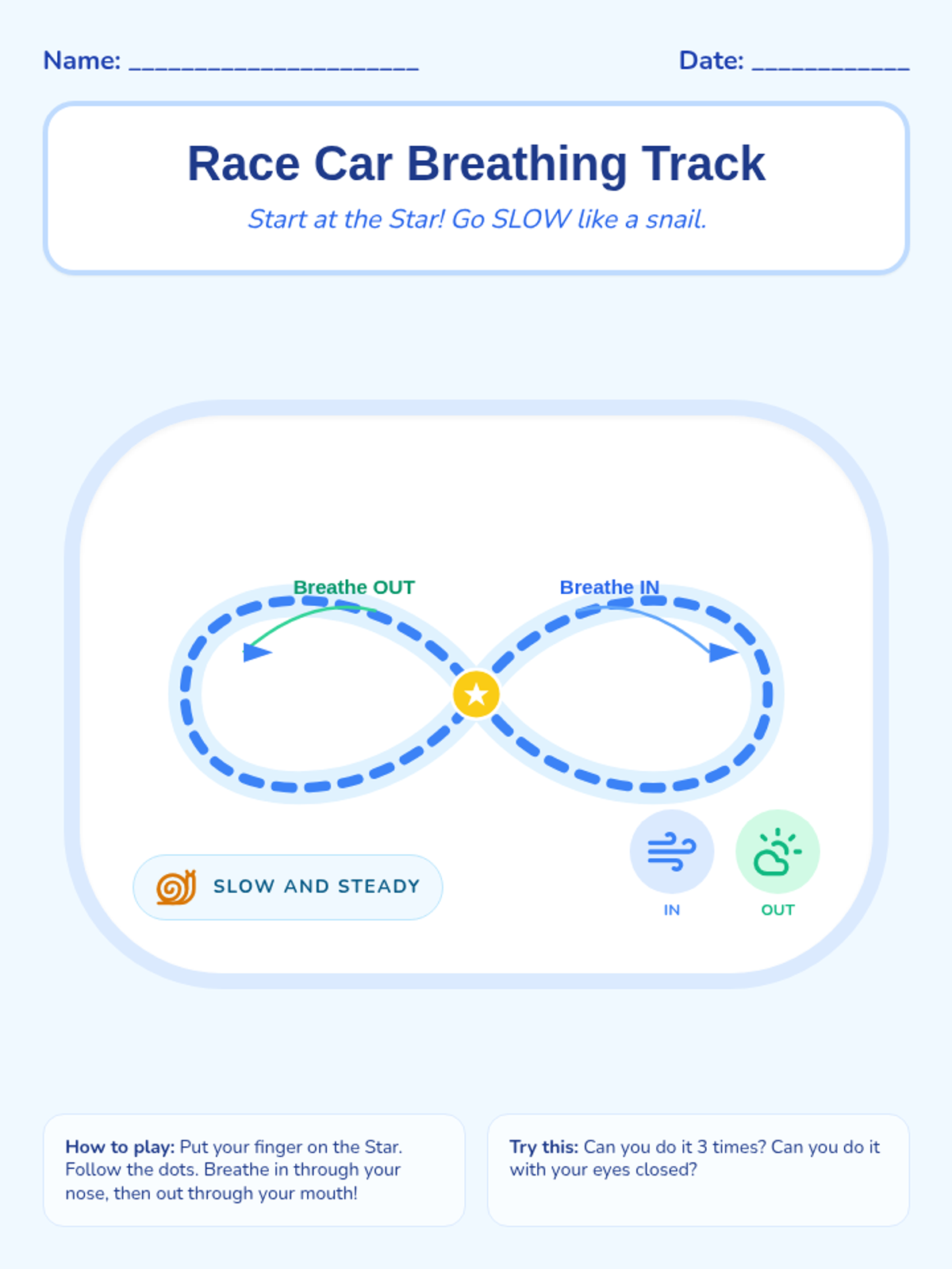 This sequence introduces Pre-K students to tactile and visual breathing strategies, helping them regulate their bodies through movement and sensory feedback. Students move from paper-based tracing to using their own hands and creating personalized sensory tools.