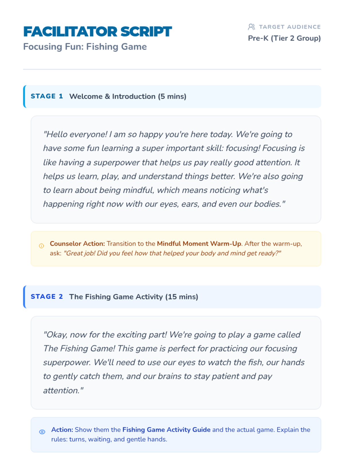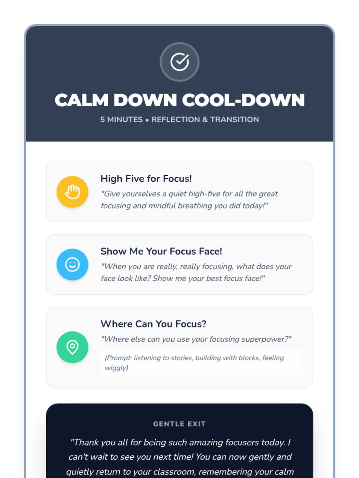 A transformative 5-lesson sequence for Pre-K students to transition from emotional check-ins to intention-based readiness routines. Students learn to set simple goals, choose daily focuses, monitor their effort, and reflect on their progress with peers.