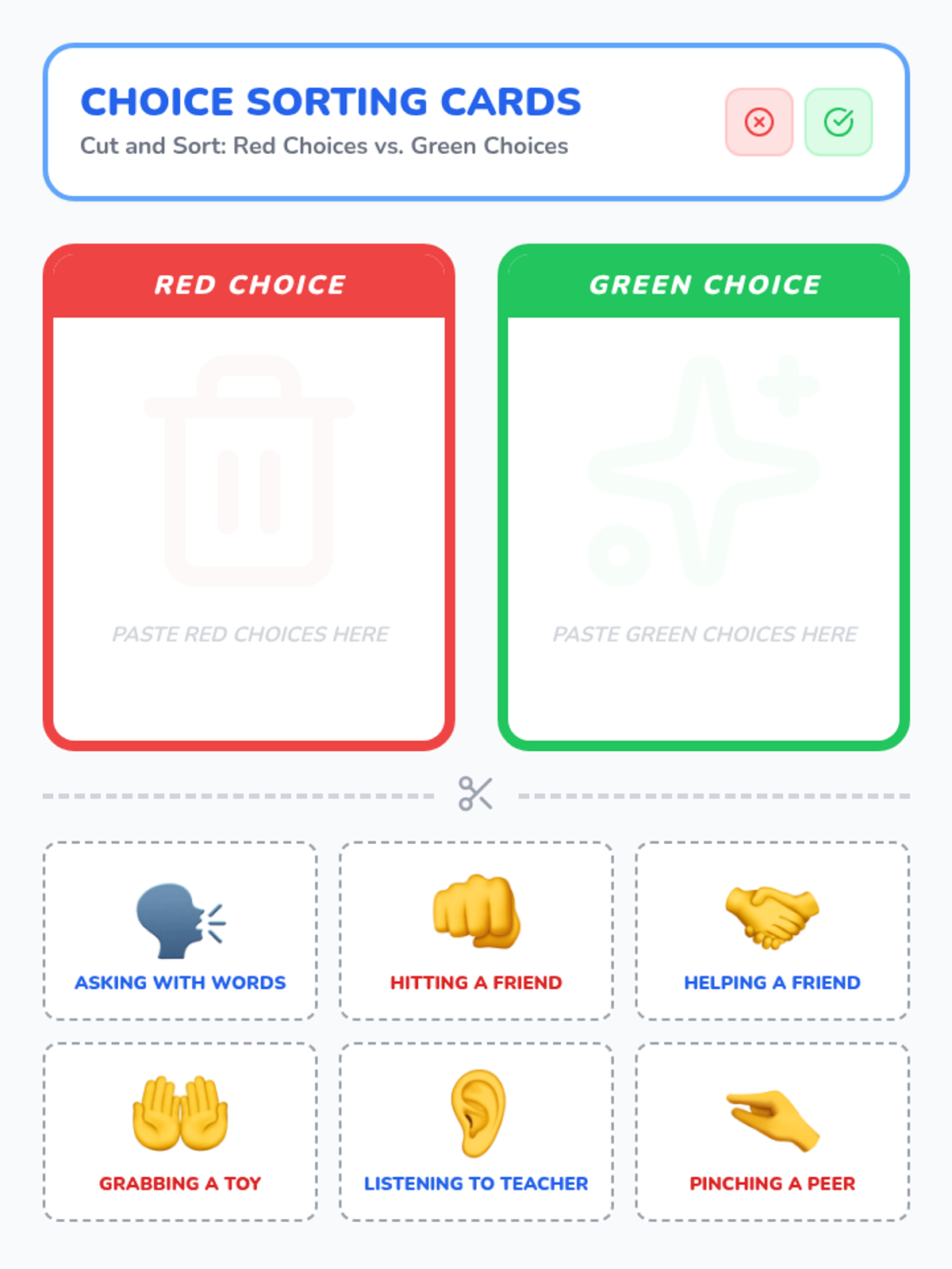 A Kindergarten social-emotional learning sequence focused on building positive peer interaction skills through social scripting, personal boundaries, and conflict resolution. Students use role-play and visual stories to internalize strategies for sharing, joining groups, and handling social rejection.