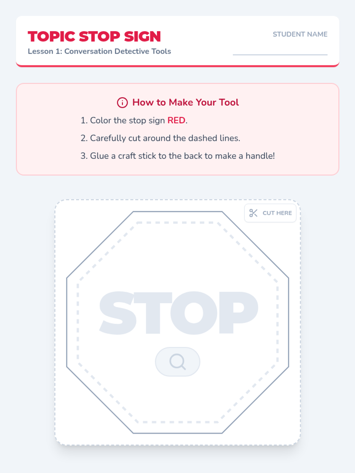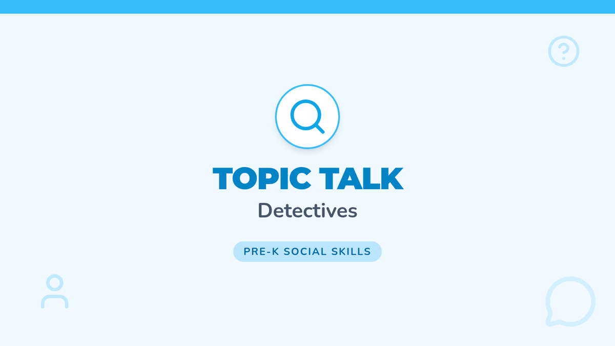 A detective-themed sequence for Pre-K students to develop foundational active listening and topic maintenance skills. Students learn to identify visual and auditory clues to stay on topic during social interactions.