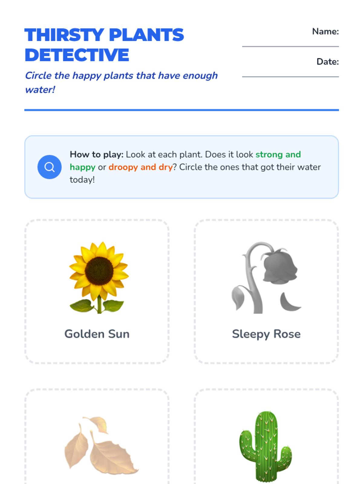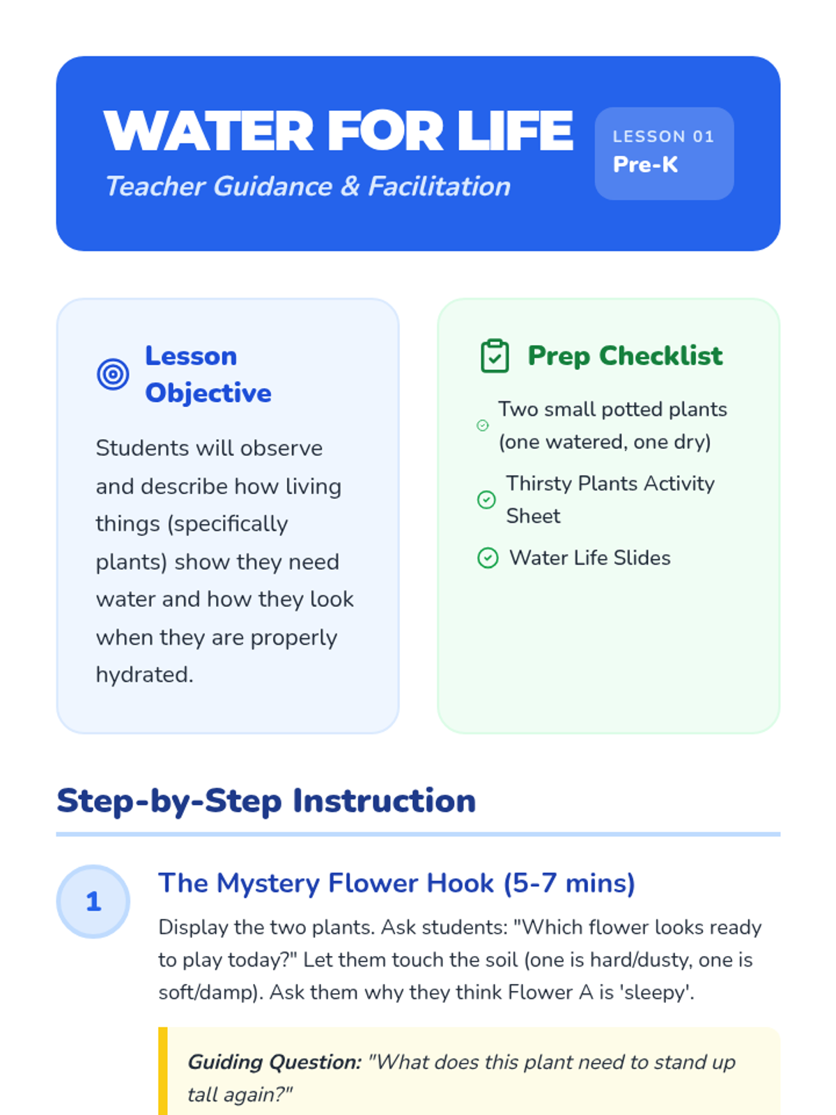 A Pre-K inquiry-based sequence exploring why living things need water. Students transition from observing plants to understanding water as fuel for their own bodies and brains.
