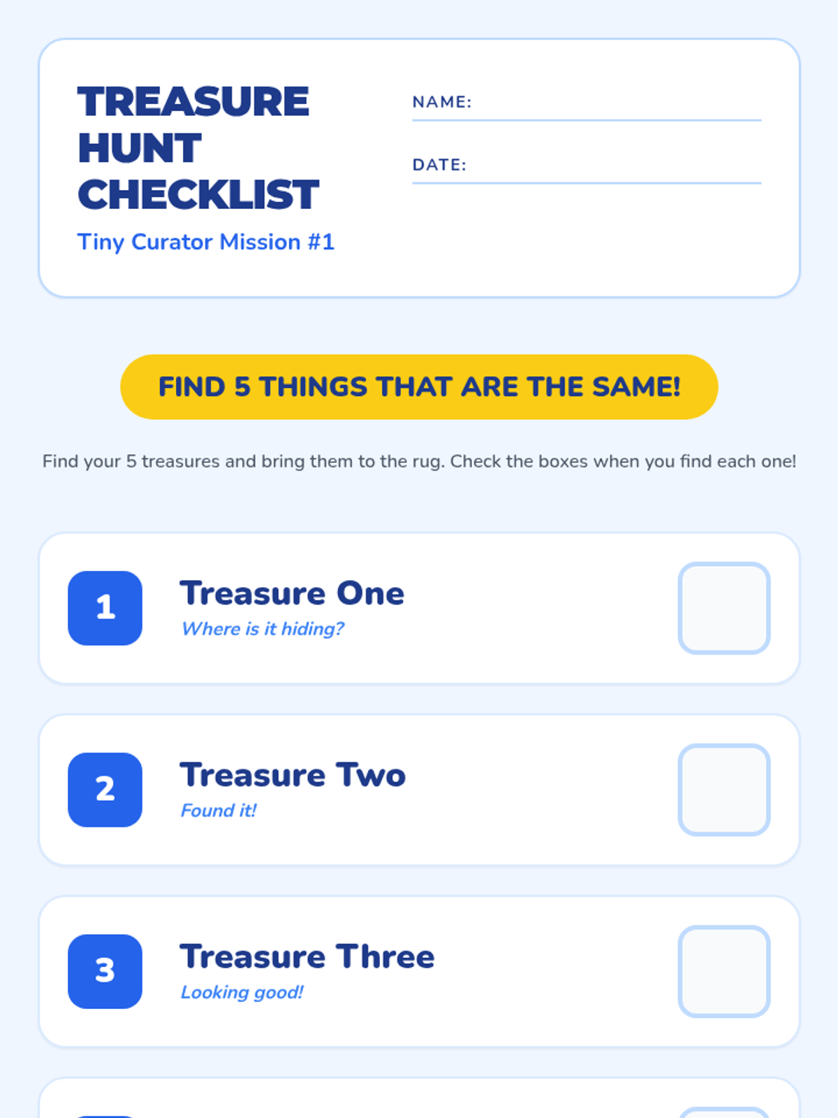 A project-based unit where Pre-K students become curators, gathering, sorting, labeling, and displaying collections of objects to master counting skills and number representation.