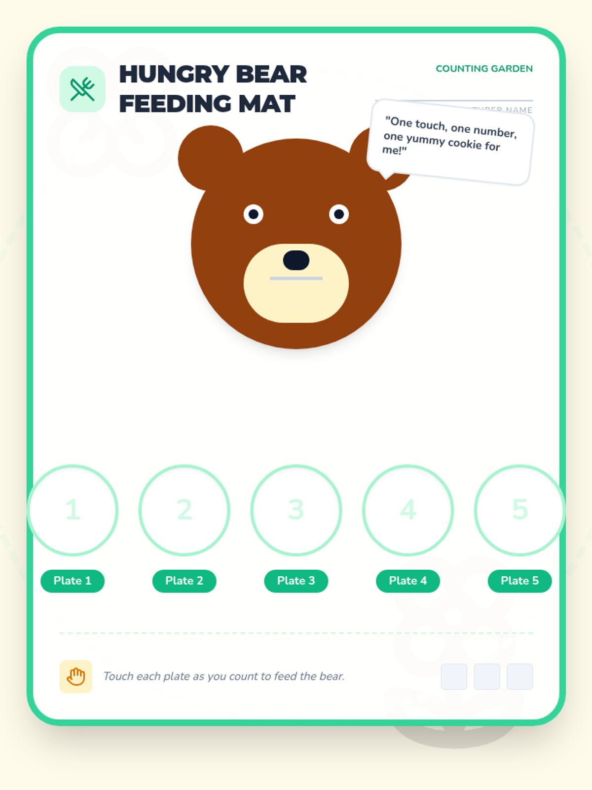 A comprehensive Pre-K sequence focused on one-to-one correspondence, cardinality, and counting strategies through a playful 'Counting Garden' theme. Students progress from basic touch-counting to identifying totals and managing scattered sets.