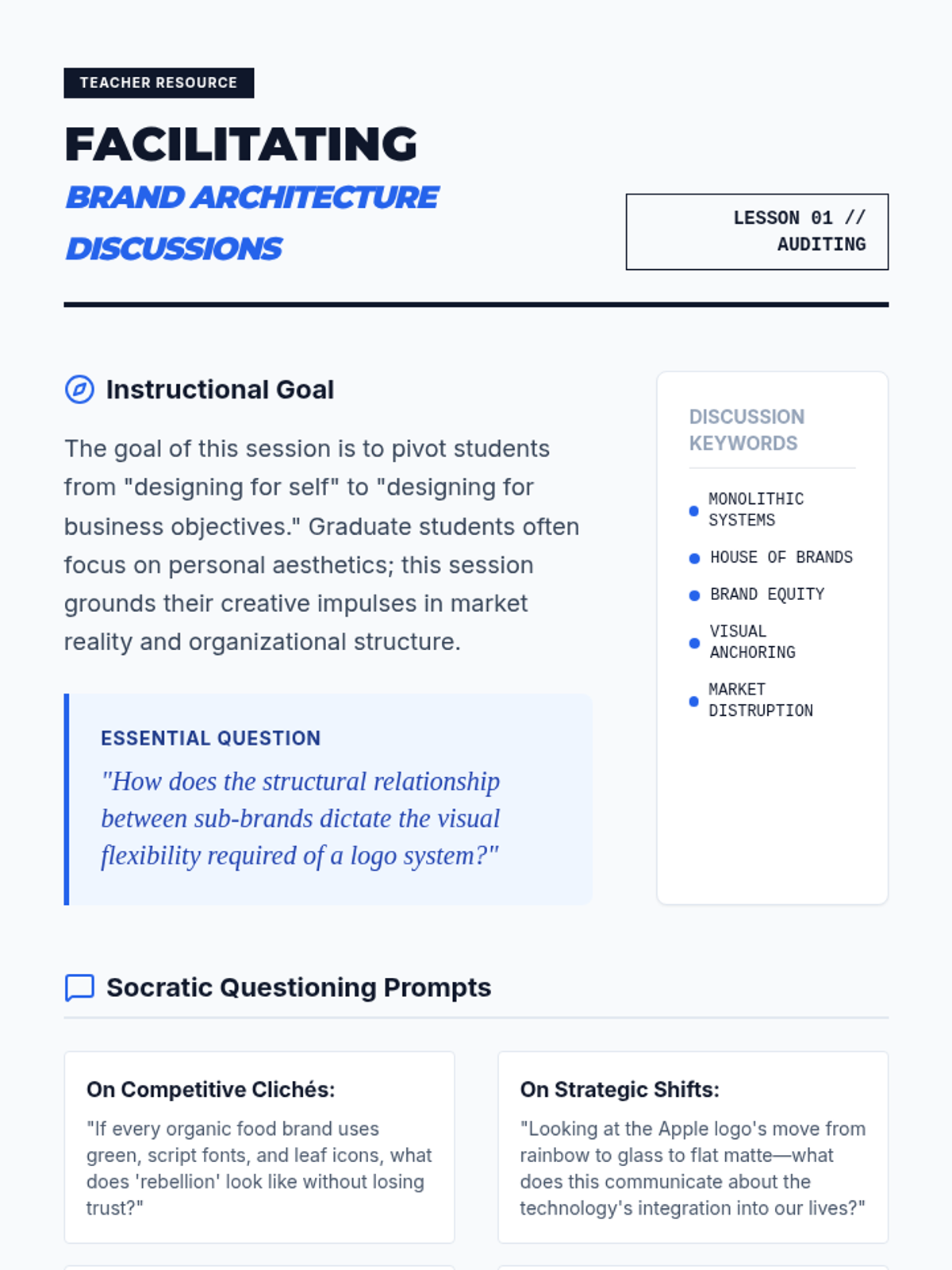 This graduate-level sequence explores the strategic intersection of visual design and brand identity, moving from surface-level aesthetics to deep strategic systems. Students learn to translate organizational values into scalable visual assets, culminating in the creation of a professional brand standards manual.