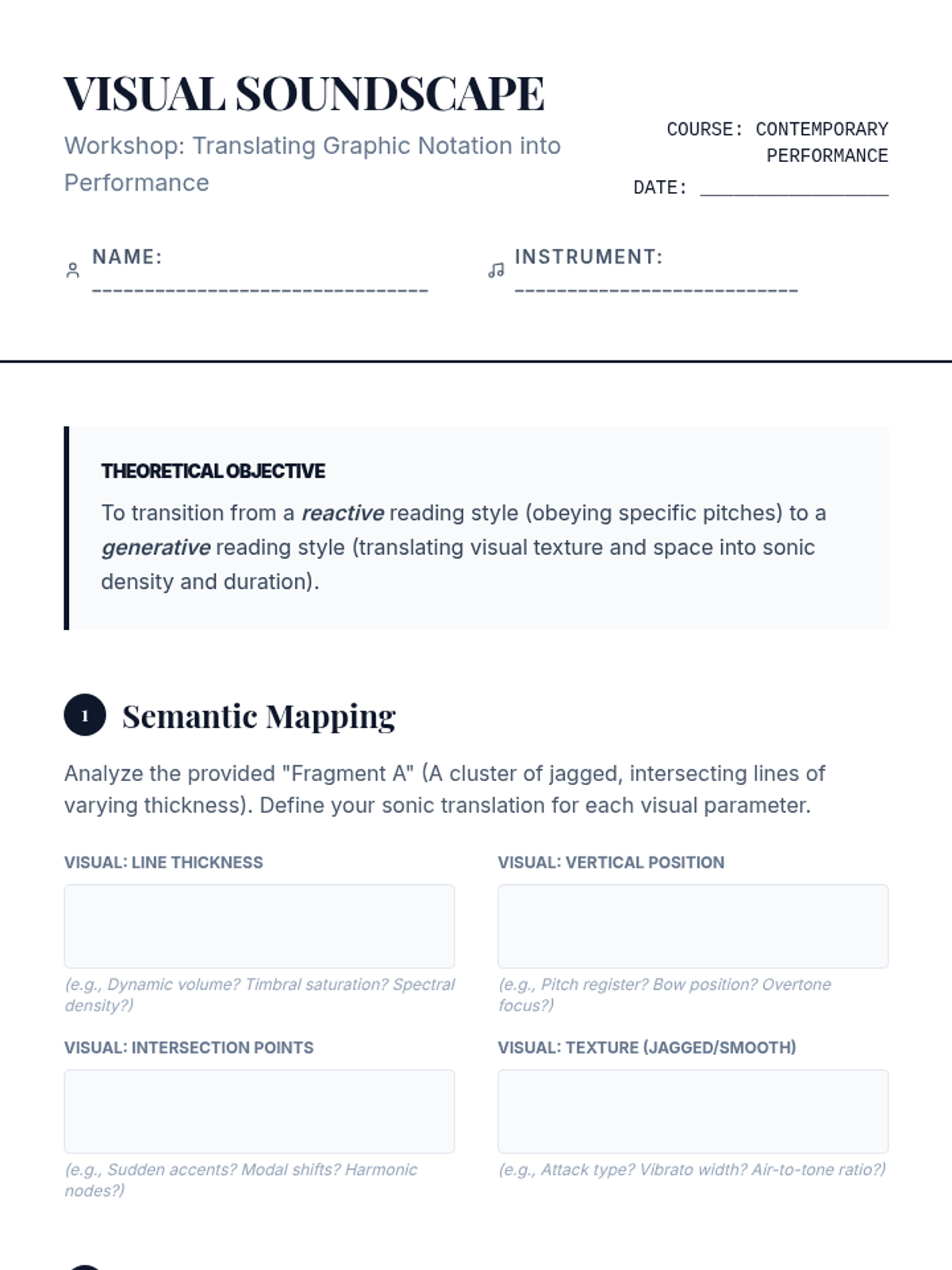 Students explore the evolution of instrumental music into the 20th and 21st centuries, focusing on non-traditional notation and extended techniques. The sequence covers major movements like serialism and minimalism, practical workshops on multiphonics and percussive effects, and project-based work with graphic scores.