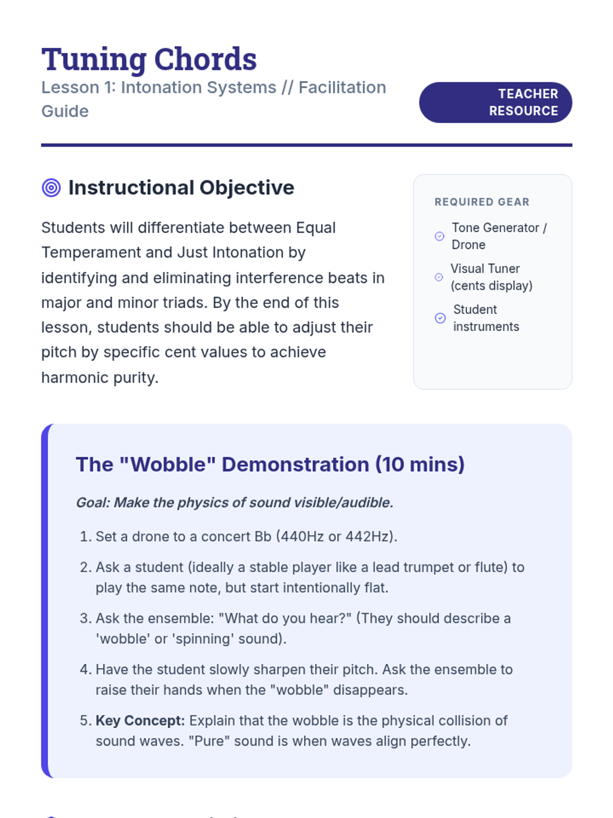 This sequence guides 11th-grade instrumentalists from individual technical proficiency to advanced ensemble cohesion. Students explore the physics of intonation, the mathematics of complex rhythms, and the artistry of non-verbal communication to create a unified 'professional' sound.