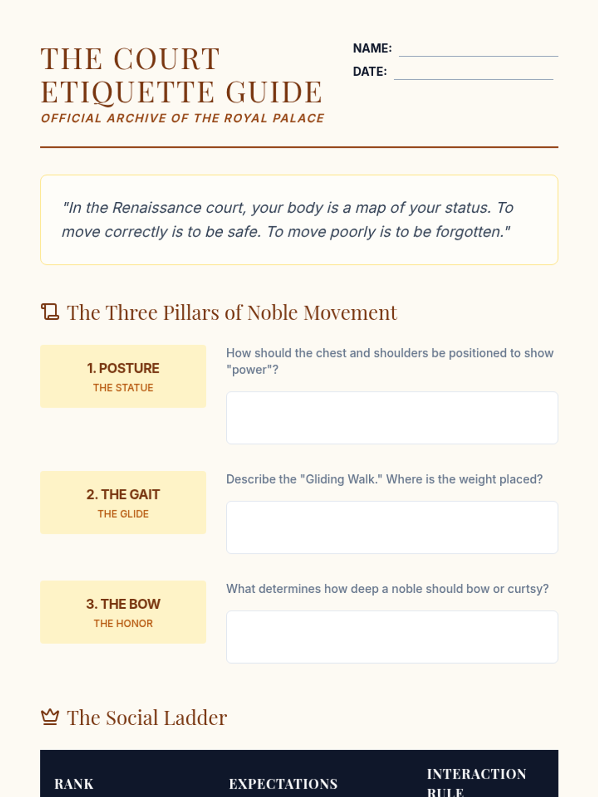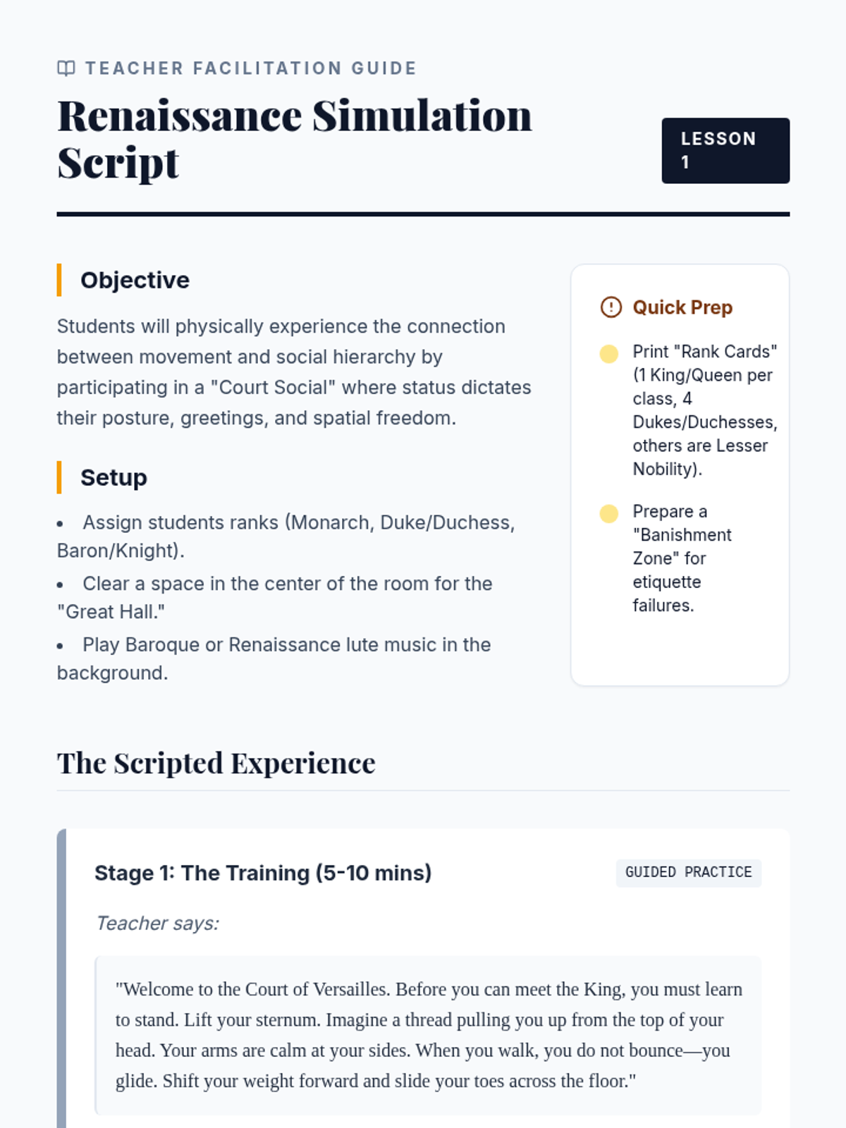 A journey through the history of classical dance, exploring how power, fashion, and social hierarchy shaped the movement styles of the Renaissance and Baroque eras into the formalized art of ballet. Students will move from court etiquette to the technical rigor of King Louis XIV's court, analyze Romantic era narratives, and create their own codified dance systems.