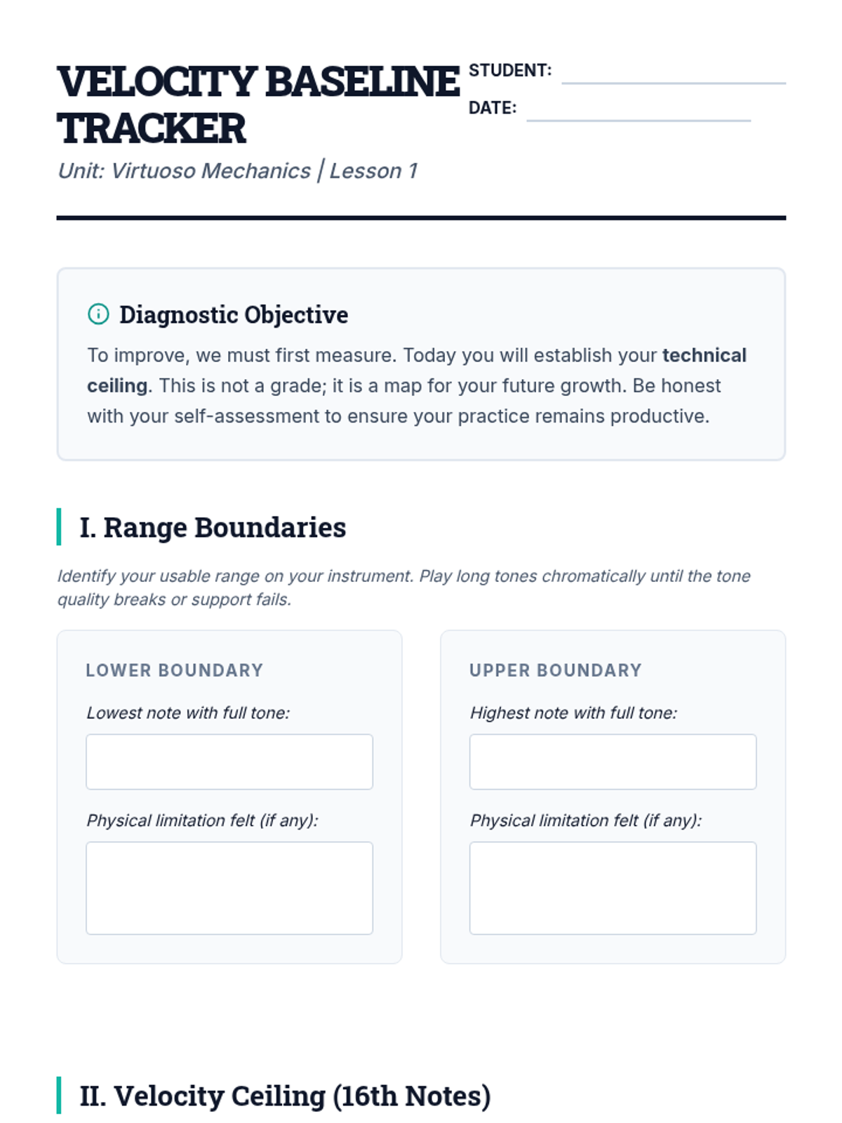 A comprehensive 11th-grade instrumental music unit focused on technical mastery. Students explore the mechanics of speed and articulation, progressing from baseline diagnostics to advanced instrument-specific techniques and culminating in a performance-based assessment of a technical etude.