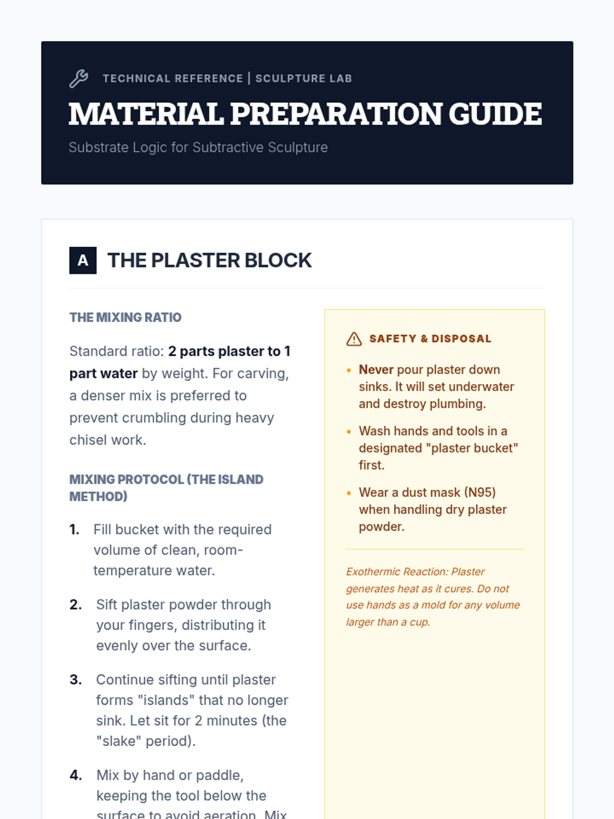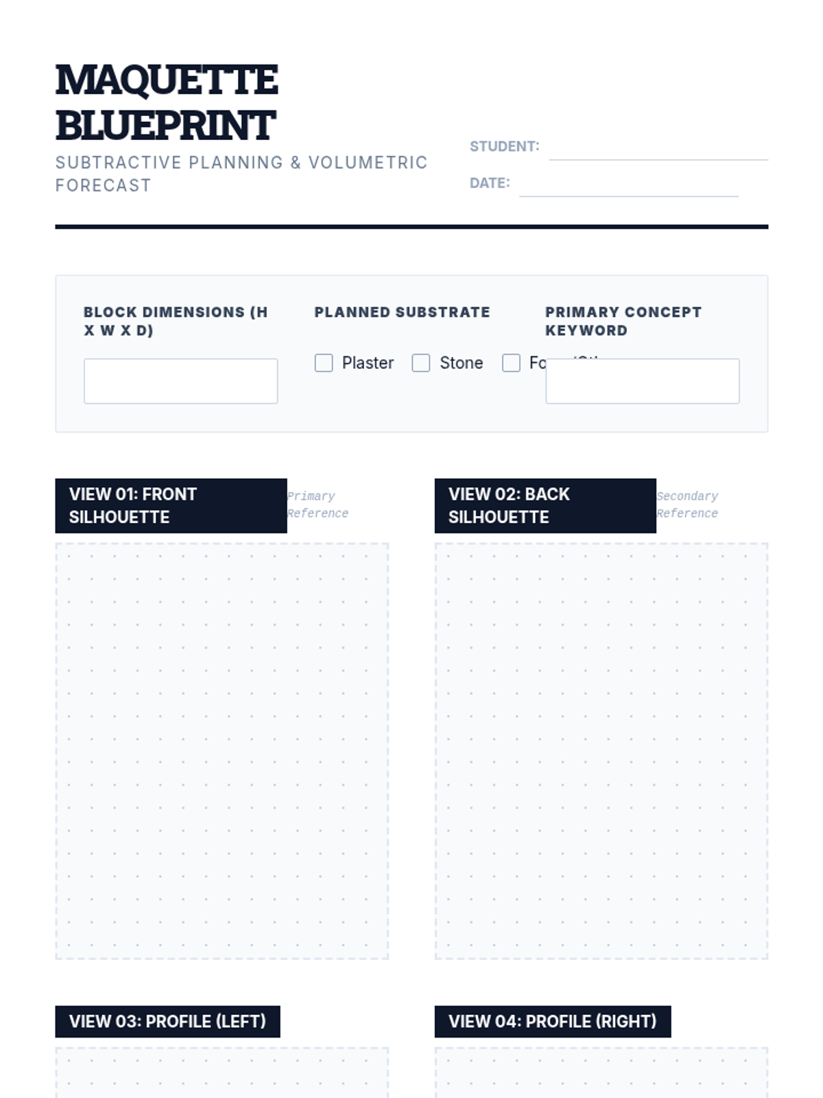 A comprehensive sequence for undergraduate sculpture students focusing on subtractive methodologies. Students learn to navigate the irreversible process of carving, moving from clay maquettes to roughing out forms, activating negative space, and achieving professional surface finishes.