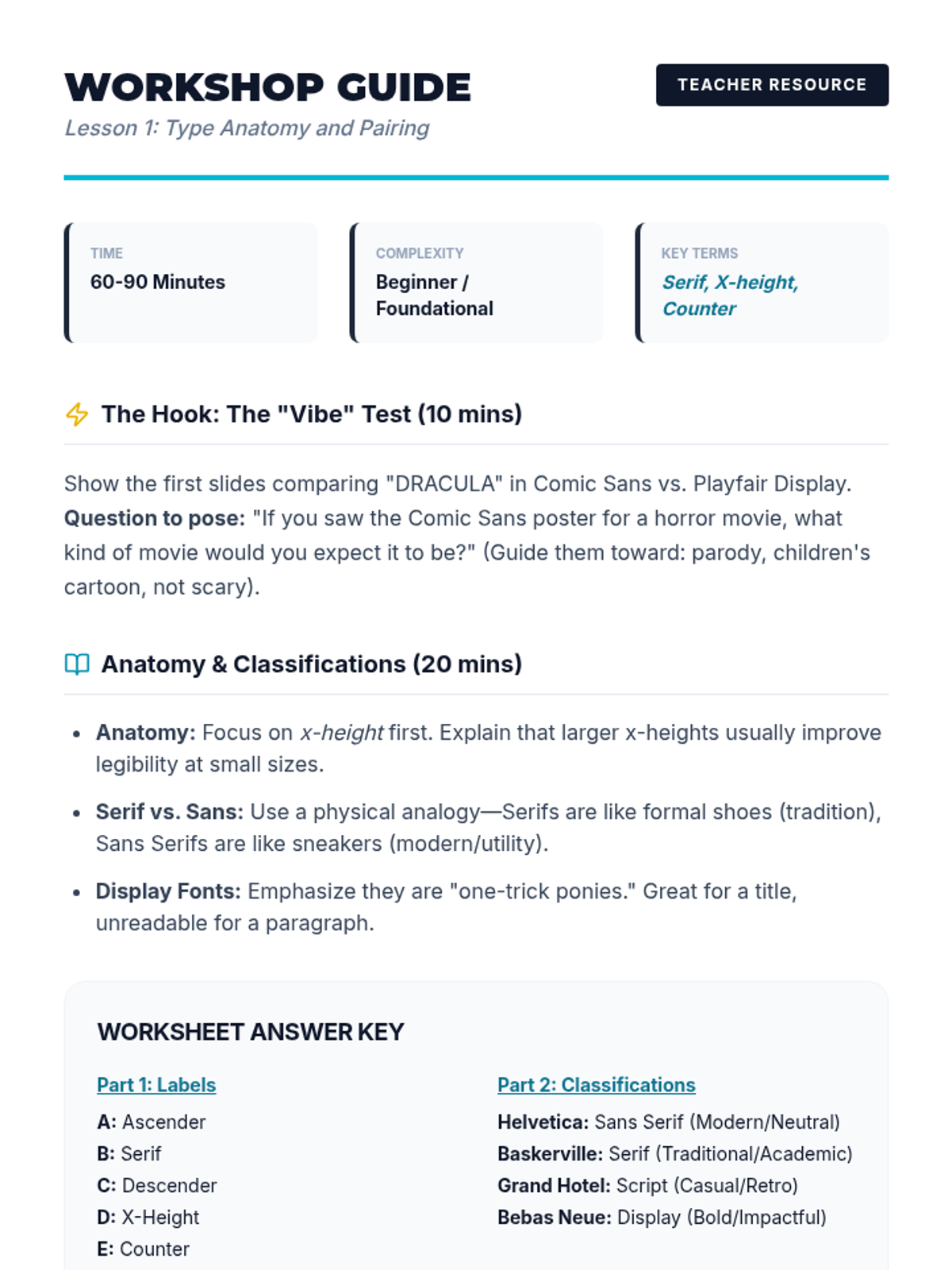 A 5-lesson unit for 9th-grade students exploring the fusion of typography and imagery. Students transition from manual layout techniques and font psychology to digital vector design and the production of a physical 8-page Zine.