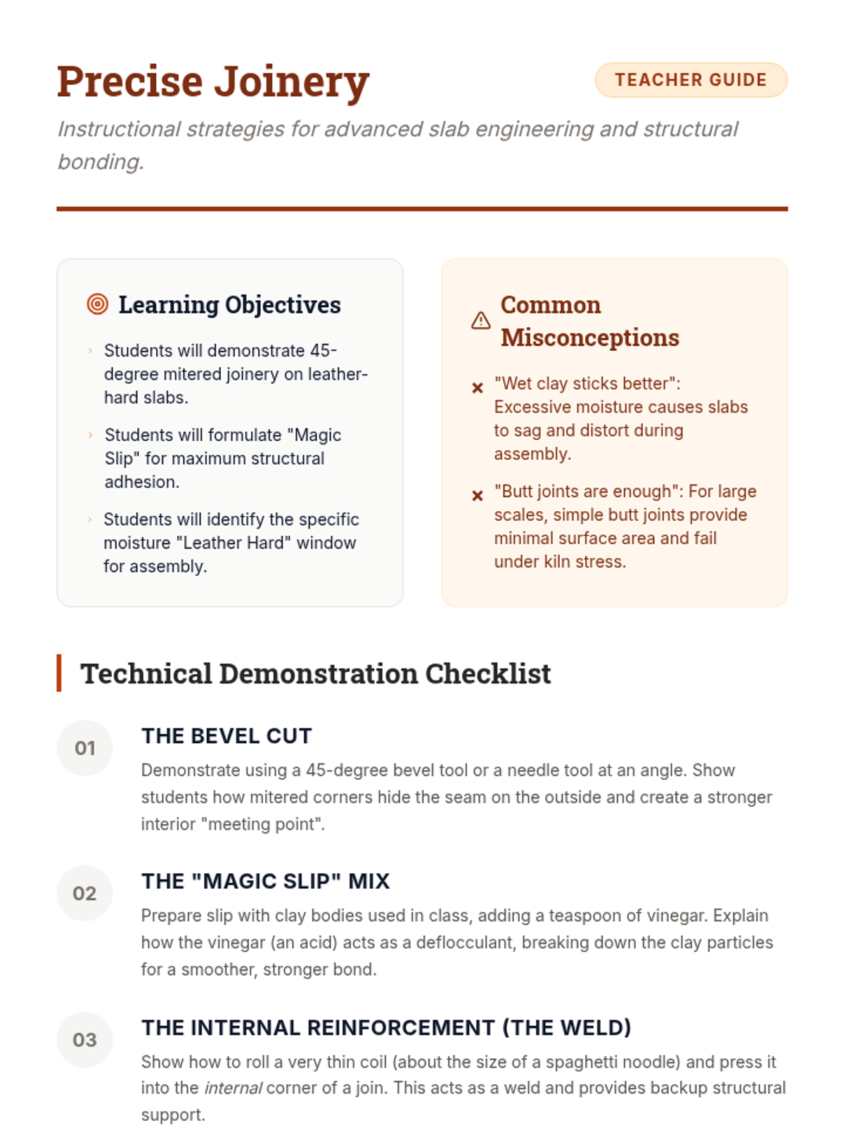 This sequence advances students' ceramic skills into complex hand-building engineering, focusing on large-scale slab construction, internal supports, surface design, and kiln firing. Students will design and build structural forms that defy gravity while mastering the chemical and physical transformations of clay and glaze.