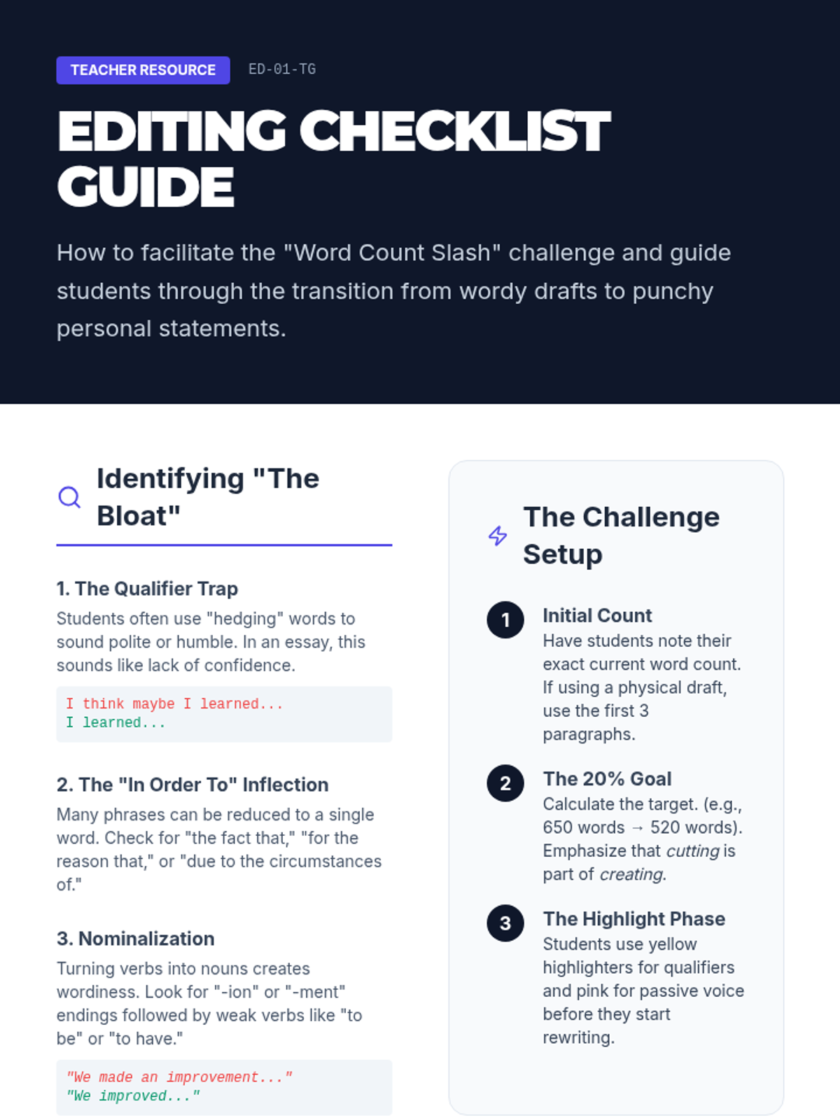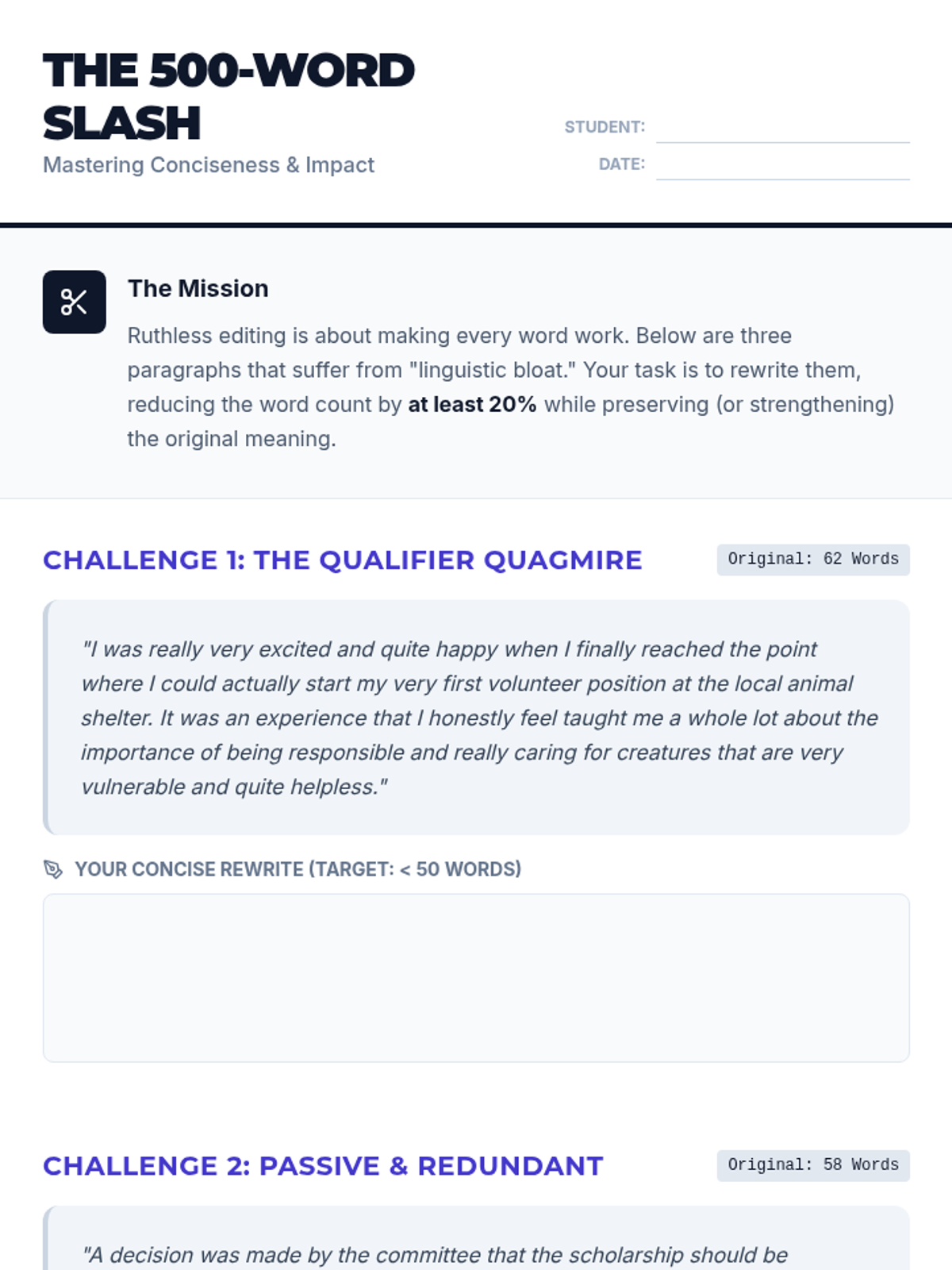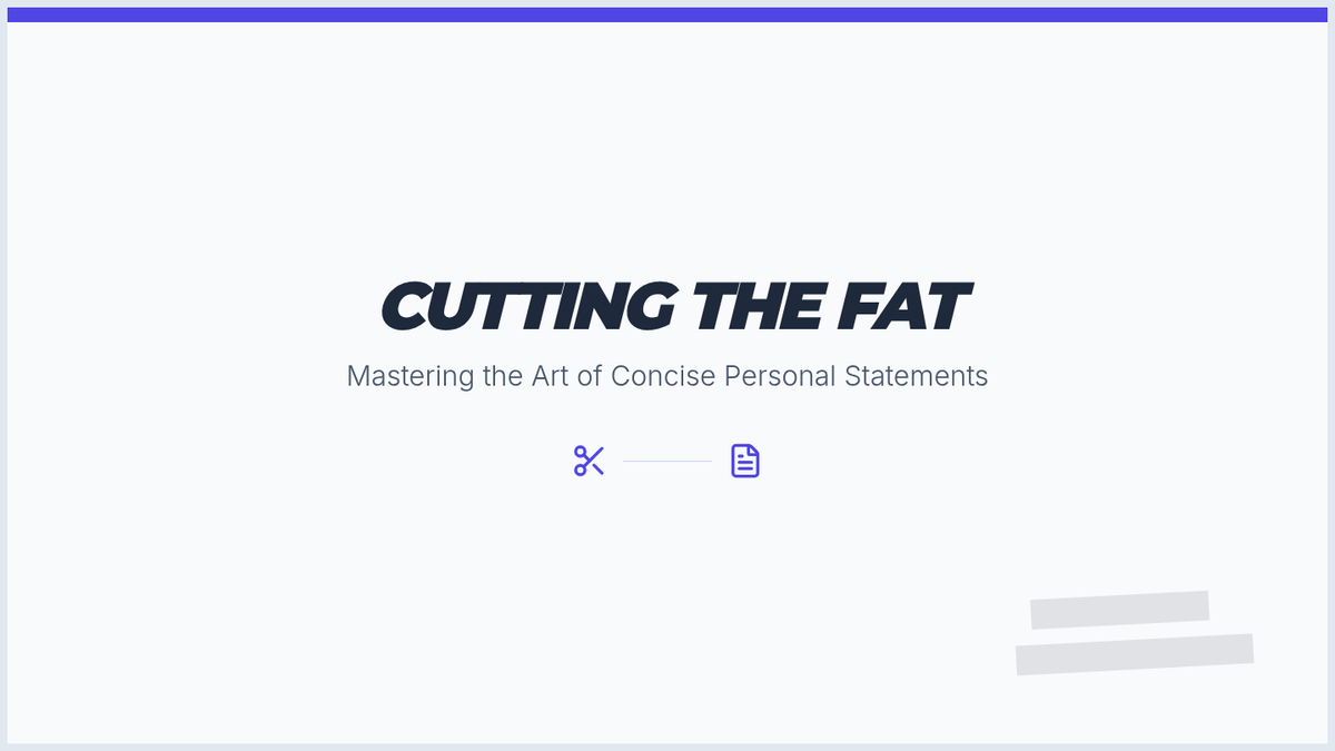 A high-level writing sequence for graduate students focusing on the final stages of personal statement revision. Students learn advanced techniques for conciseness, logical flow, authoritative tone, feedback management, and final submission quality assurance.