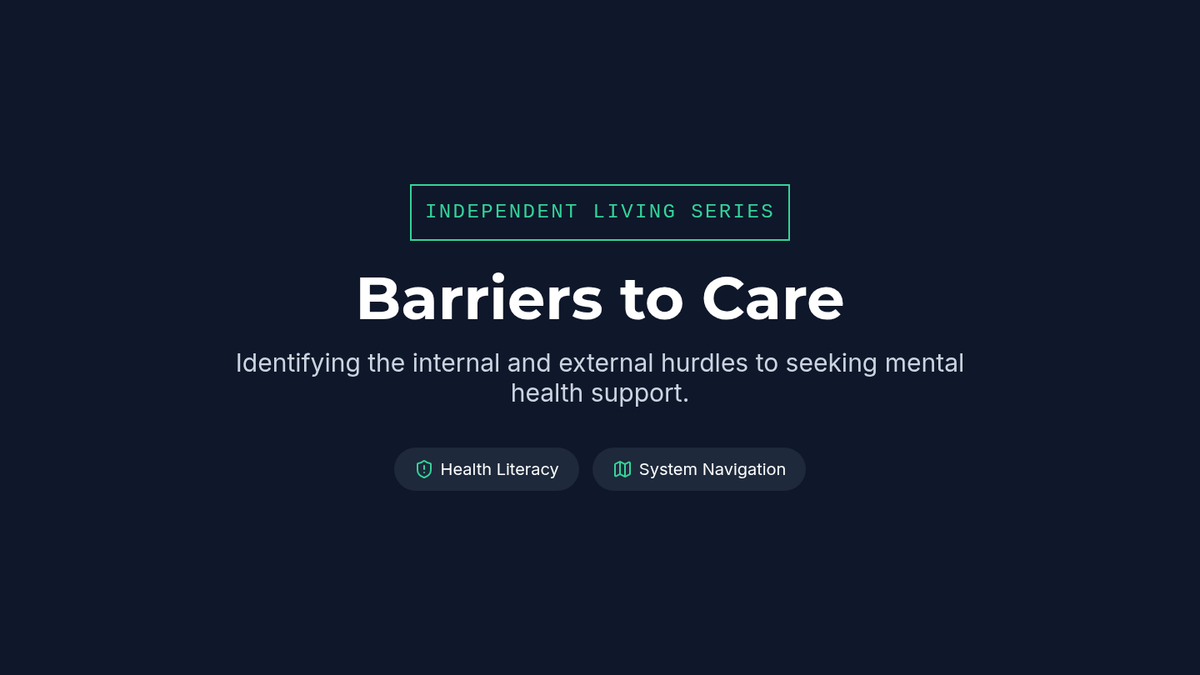 A comprehensive sequence for undergraduate students to navigate the complexities of mental health care, focusing on overcoming internal and systemic barriers, resource mapping, insurance literacy, and effective communication with health professionals.