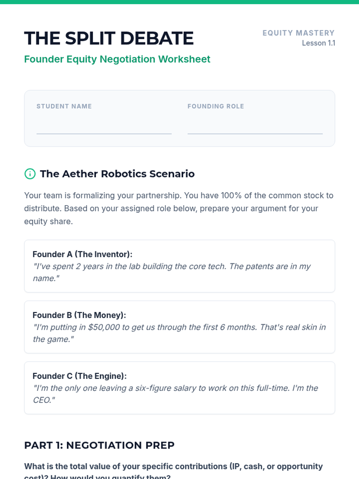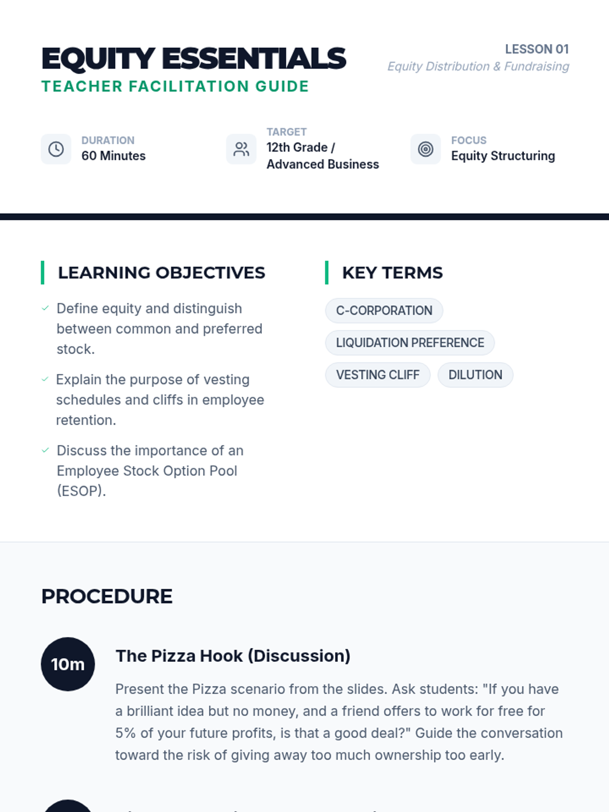 An advanced finance sequence for 12th graders exploring equity distribution, cap tables, startup valuation, and the mechanics of venture capital fundraising. Students will learn to navigate the complexities of ownership and dilution through simulations and mathematical analysis.