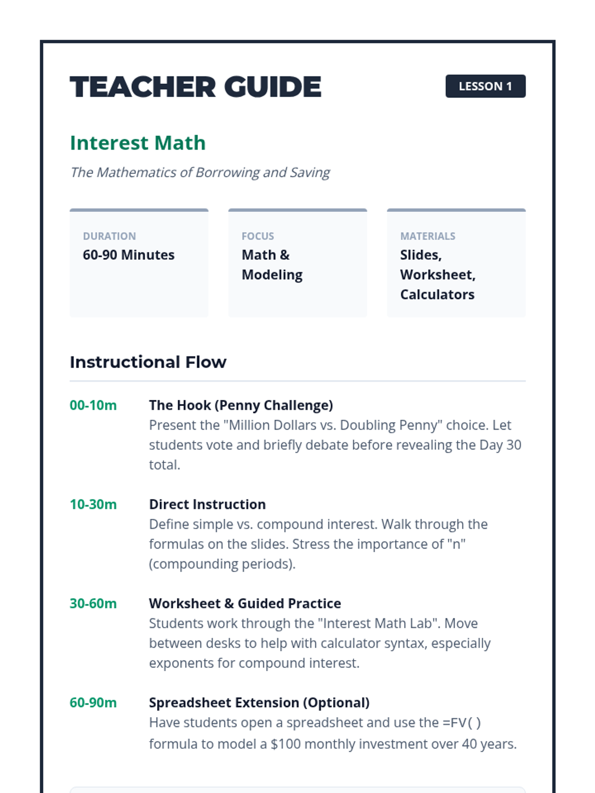 A comprehensive 11th-grade unit exploring the mechanics of interest, credit systems, loan structures, and strategic debt management to build long-term financial stability.