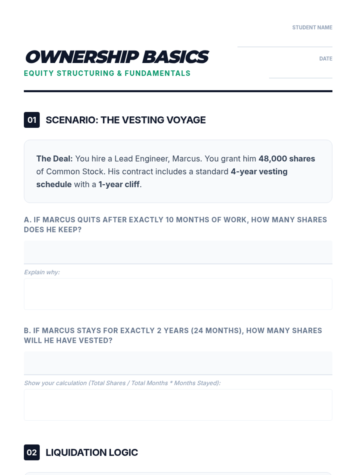 A comprehensive sequence on equity management, cap tables, and dilution for undergraduate entrepreneurs. Students learn to navigate the financial and legal complexities of startup ownership from inception to exit.