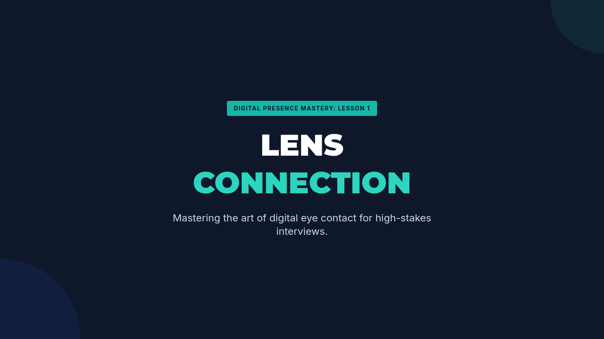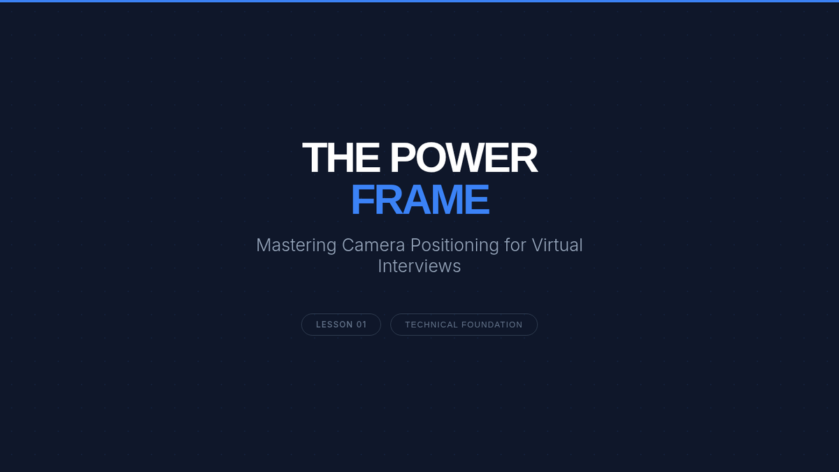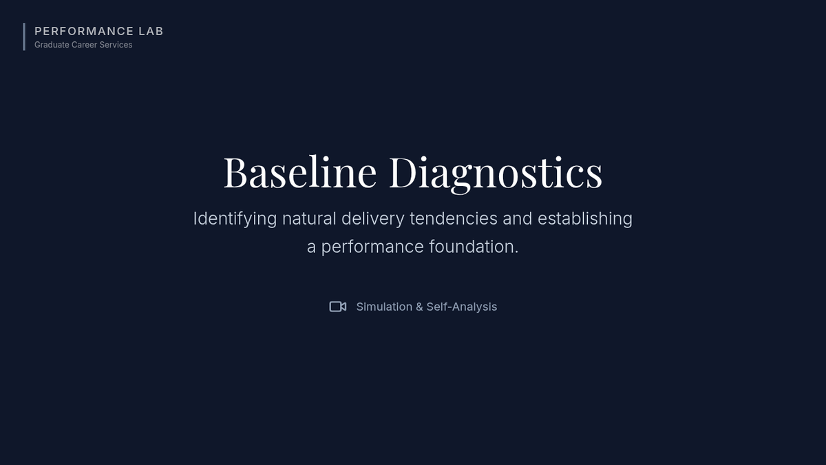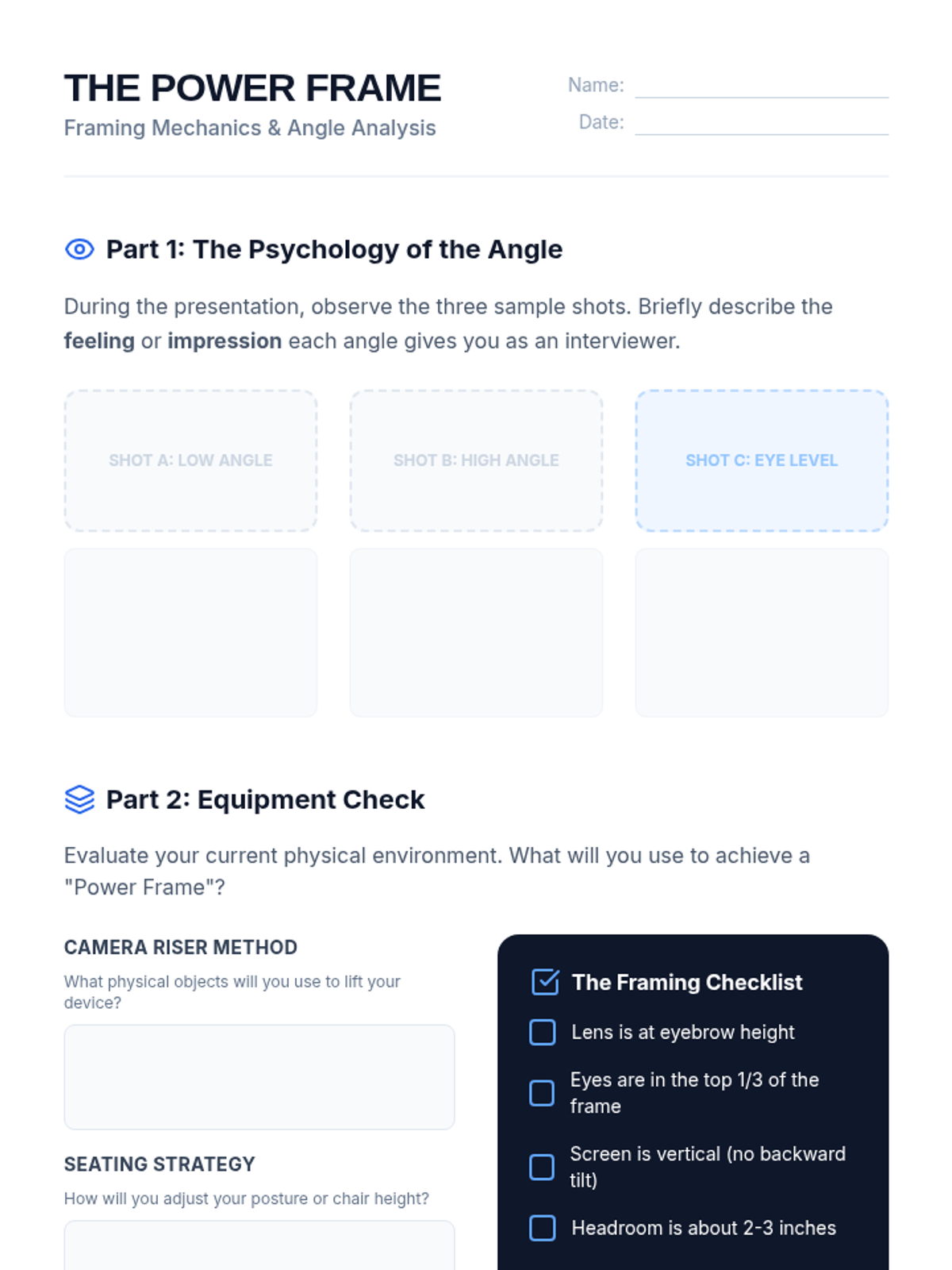 This graduate-level sequence treats the virtual interview space as a professional production set. Students will master acoustics, lighting physics, camera framing, and visual rhetoric to engineer a high-stakes professional presence.