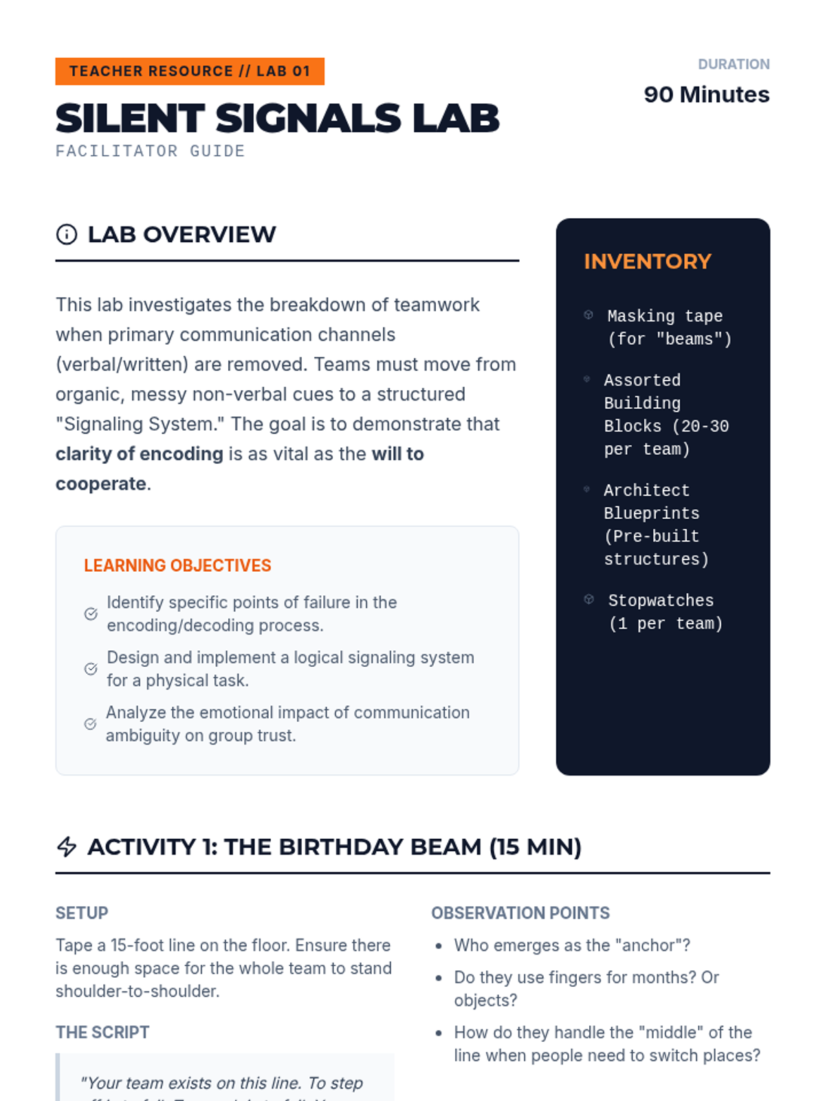 This graduate-level sequence bridges the gap between improvisational theater techniques and organizational leadership. Students explore how the mechanics of spontaneity, 'Yes, And' communication protocols, and narrative arcs can be applied to crisis management, negotiation, and high-stakes corporate communication.
