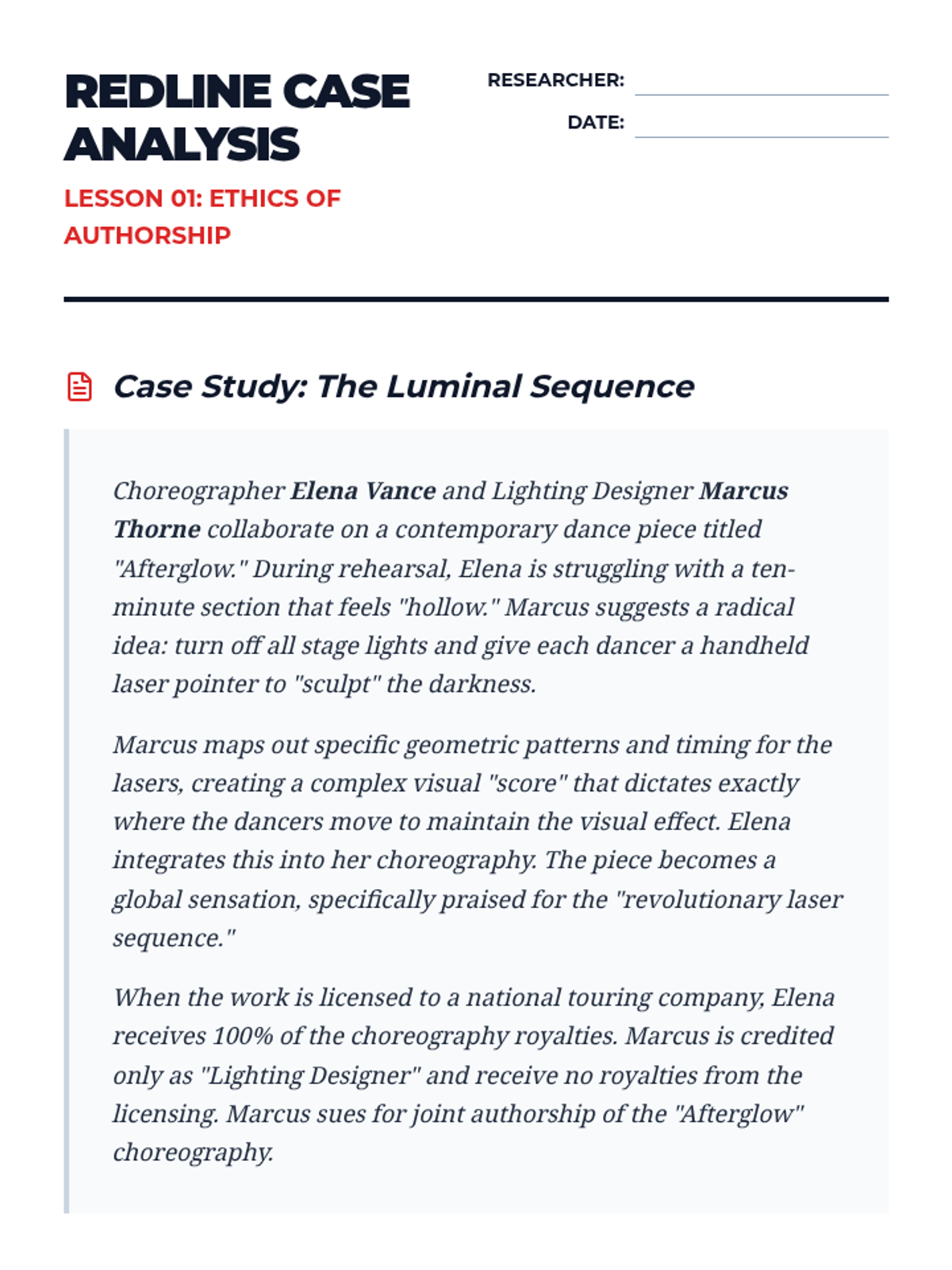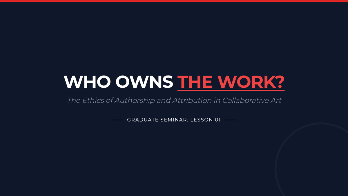 A graduate-level sequence exploring the ethical, legal, and leadership dimensions of collaborative arts practice. Students investigate authorship, intellectual property, and conflict resolution to prepare for professional creative leadership.