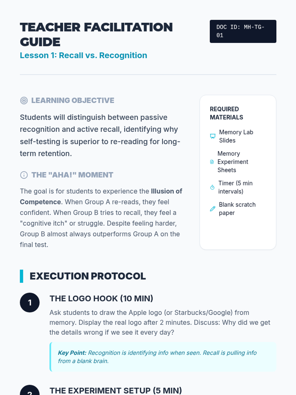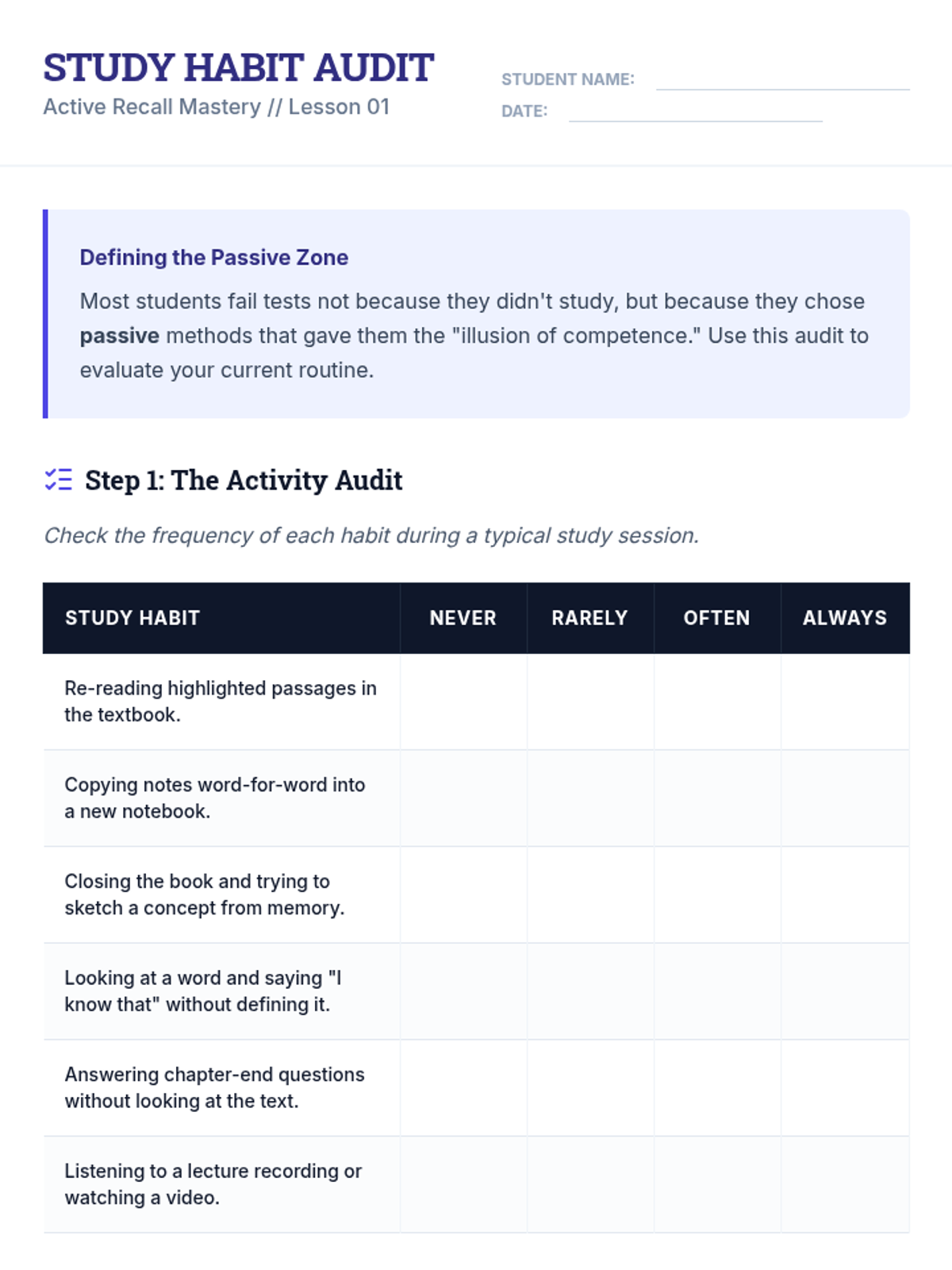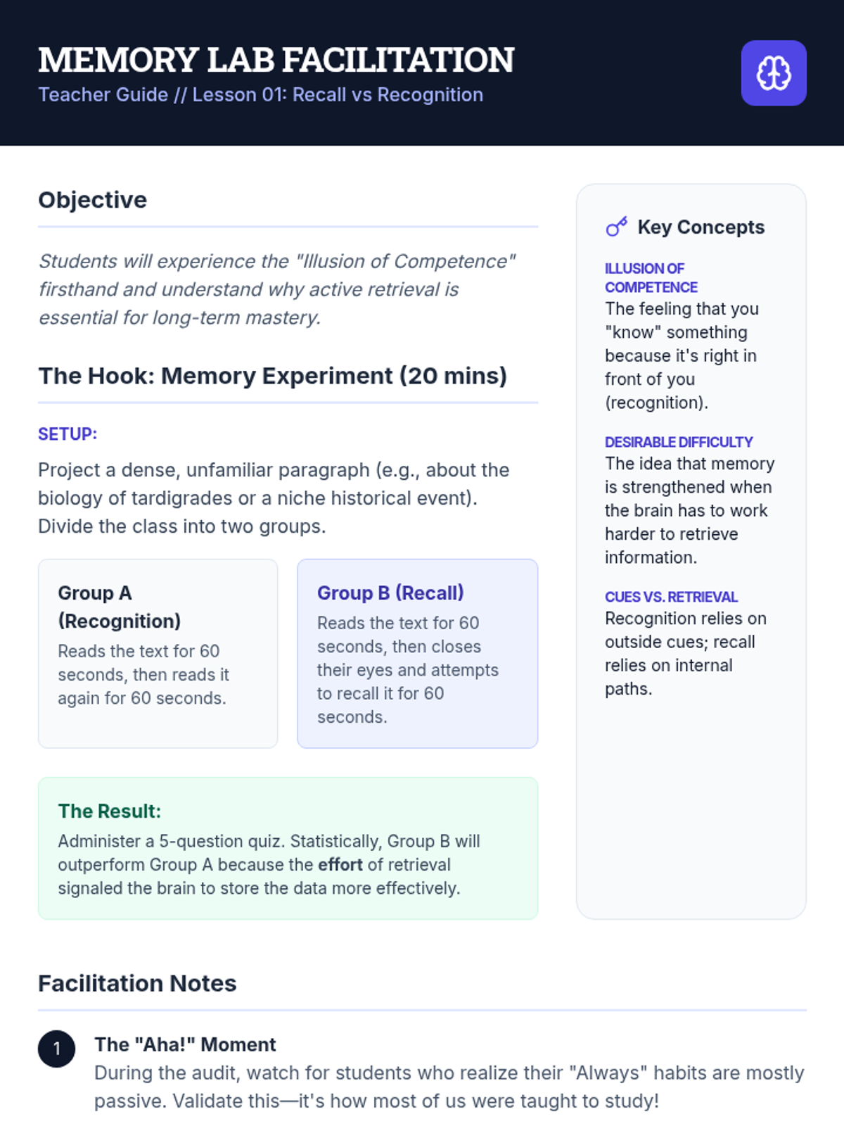 This sequence teaches 11th-grade students to transition from passive re-reading to active recall strategies. Students will master question formulation, study tool design, and error analysis to create effective self-testing materials.