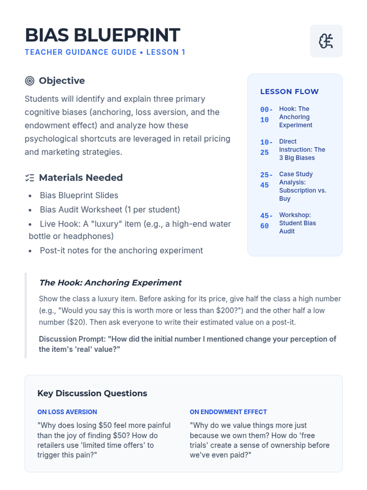 A high-school level sequence exploring the psychological and digital mechanisms of modern advertising. Students learn to identify neuromarketing, algorithmic targeting, influencer tactics, and dark patterns to develop critical consumer autonomy.