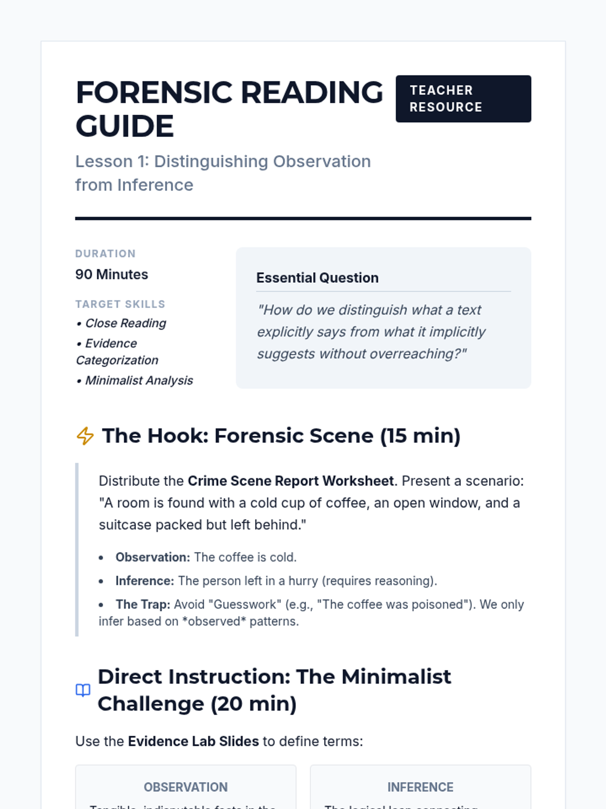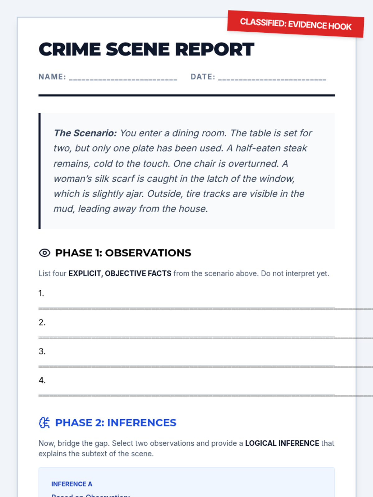 A high-level ELA unit for 11th graders that bridges formal logic and argumentative writing. Students move from identifying hidden premises (enthymemes) to constructing complex essays built on valid deductive frameworks like Modus Ponens and Modus Tollens.