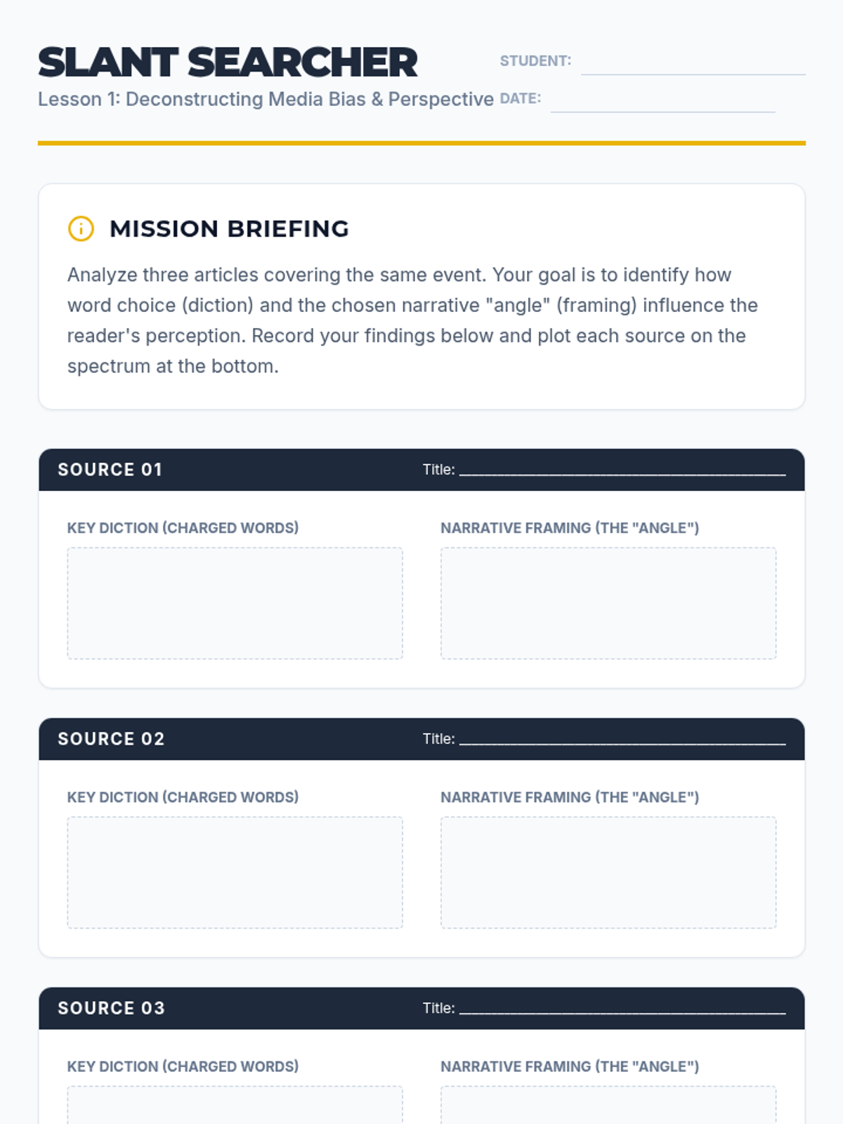 A high-level media literacy unit where students deconstruct news media through the lens of rhetoric, bias, and logical fallacies, culminating in an editorial simulation.