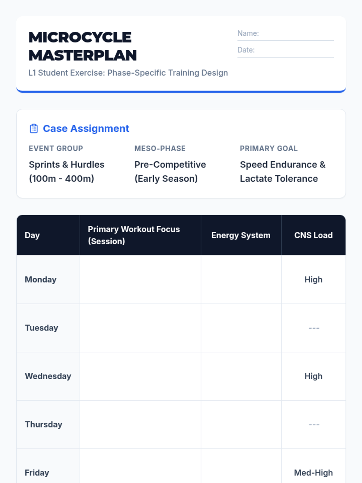 A comprehensive sequence for undergraduate students focusing on the organizational, physiological, and regulatory aspects of Track and Field, covering everything from periodization to meet administration.