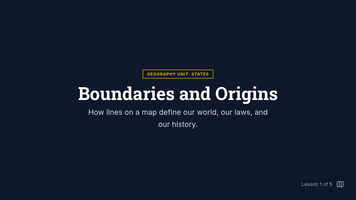 Students critically analyze the function and formation of political boundaries at the state level, moving beyond memorization to understanding the interplay between governance, physical geography, and human identity. The sequence covers boundary classifications, capital city accessibility, cultural regions, and the mechanics of gerrymandering.