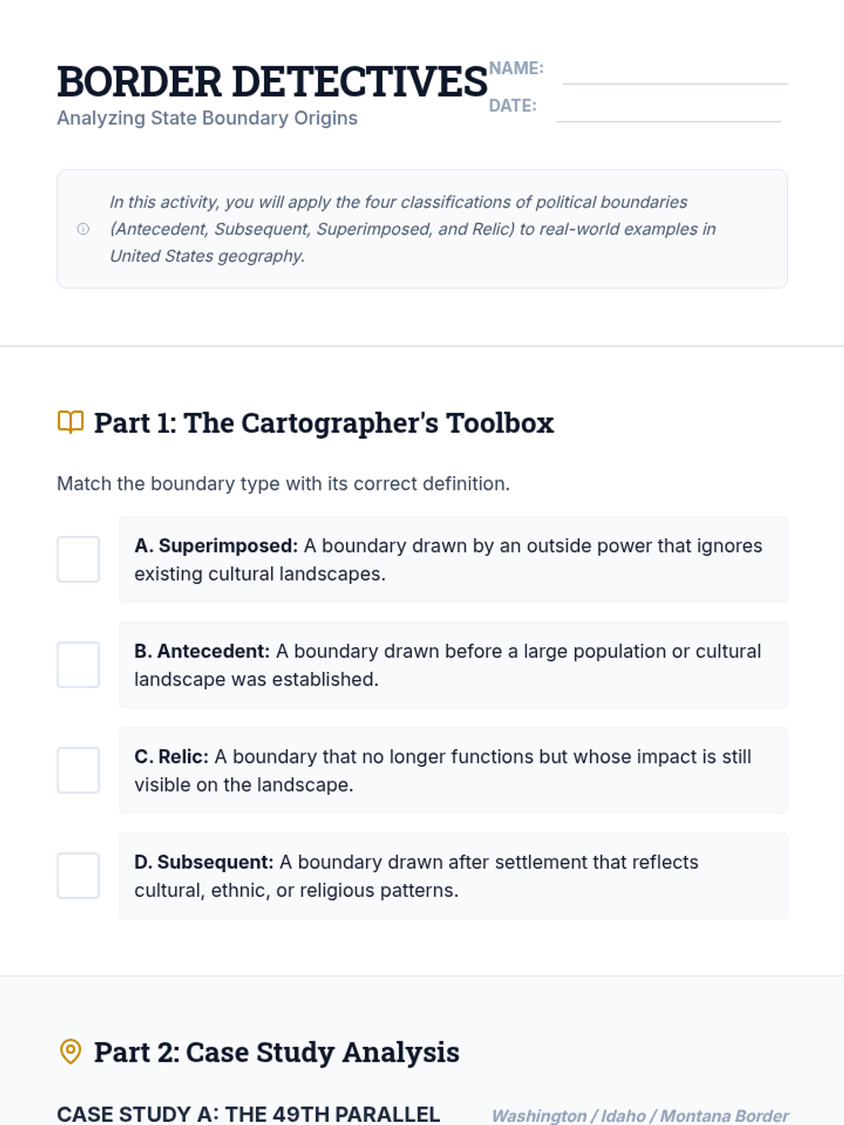 Border Detectives Worksheet
