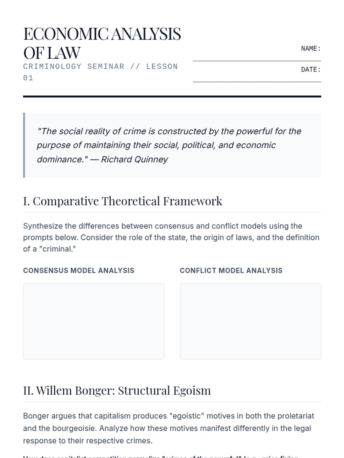 Theories of DevianceAnalyzes sociological perspectives on norm violations and societal reactions. Examines strain, labeling, and conflict theories to understand how legal and social systems define and manage deviance.