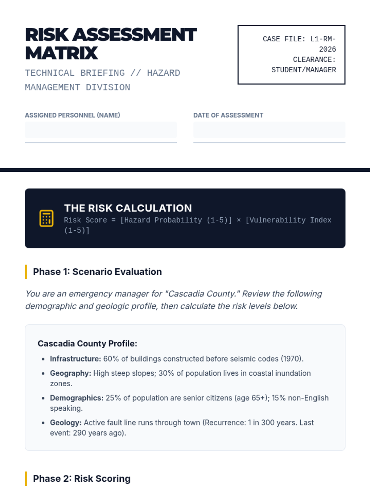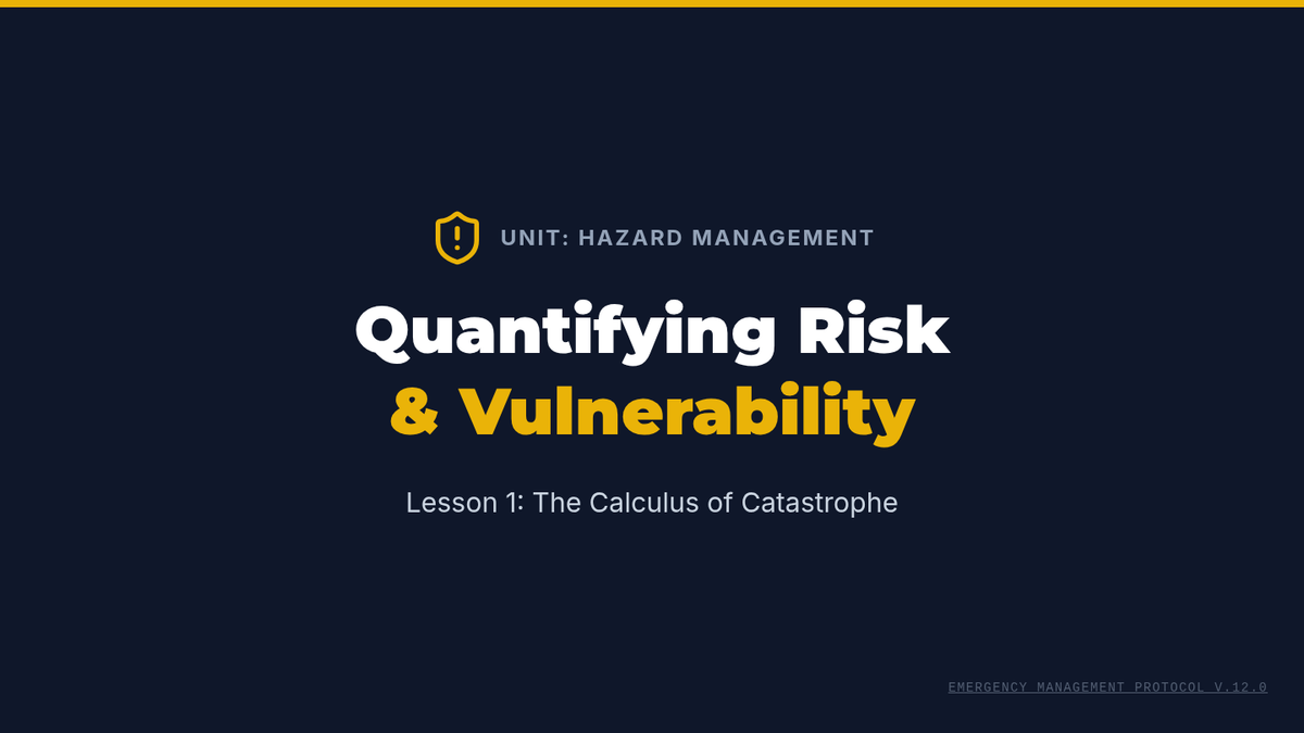 A simulation-heavy sequence for undergraduate students applying impact calculus to real-world crisis management and policy making. Students act as analysts evaluating risks through the lenses of magnitude, probability, and timeframe to produce professional decision memos.